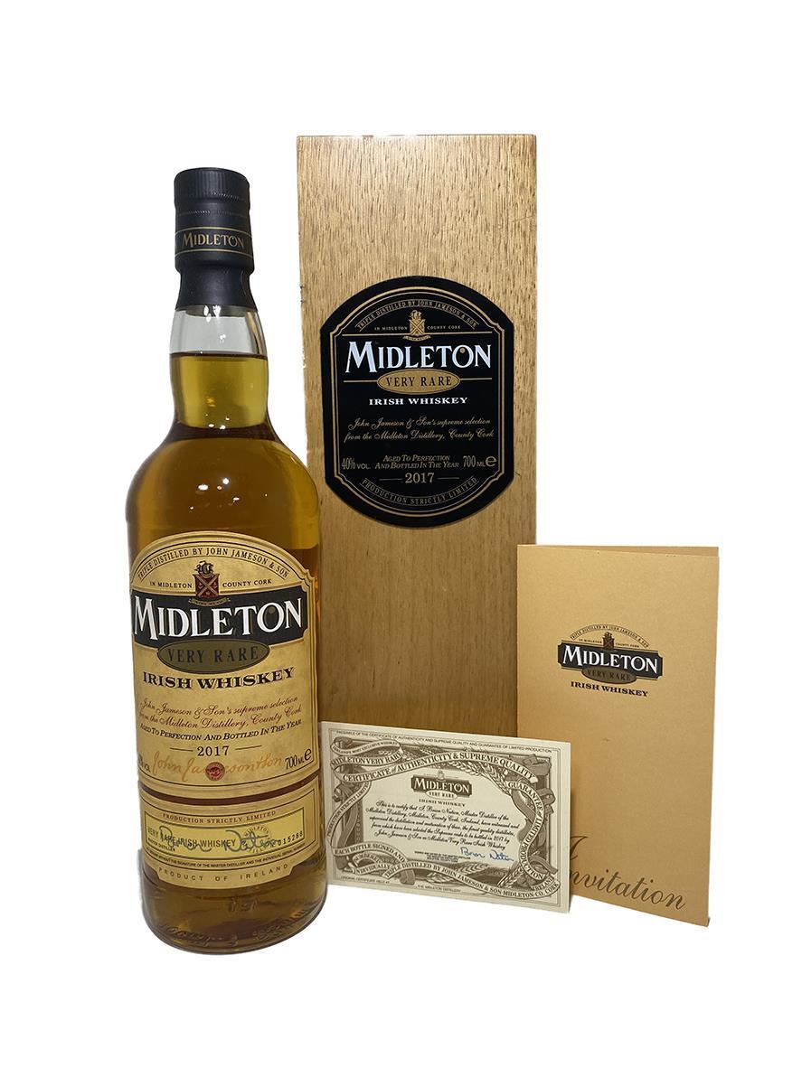 The Midleton Very Rare 2017, is a bottling brought out by the Midleton Distillery in Co. Cork. The ‘Midleton Very Rare’ range was launched in 1984 and a new vintage has been released every year since then. Barry Crockett started off the ‘Midleton Very Rare’ range while he was the Master Distiller of Midleton Distillery, in 2013 Barry Crockett retired from his role of Master Distiller. From 2014 onwards Brian Nation has been creating the ‘Midleton Very Rare’ range, maintaining its role as standard-bearer and pinnacle of Irish Whiskey. The bottle and gift box in great condition also include the cert and distillery invite. Old bottle style and label. Bottle number 33471.