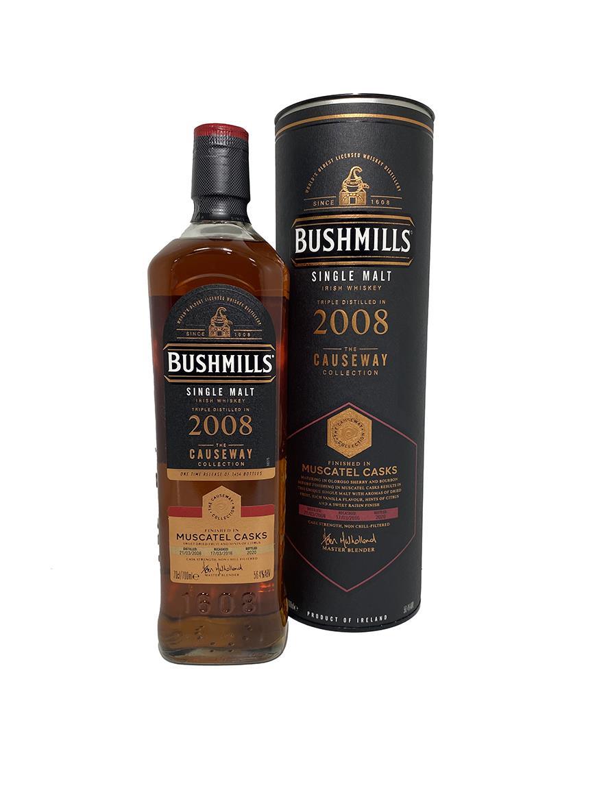 The 2008 Muscatel Cask is a limited edition rare cask finished, cask strength (56.4% ABV) and non chill filtered Irish single malt. It represents a bold new step for Bushmills. After maturing for almost eight years in oloroso sherry butts and bourbon barrels, Helen Mulholland, Master Blender, finished this whiskey in rare muscatel cask. Only 1454 bottles released.