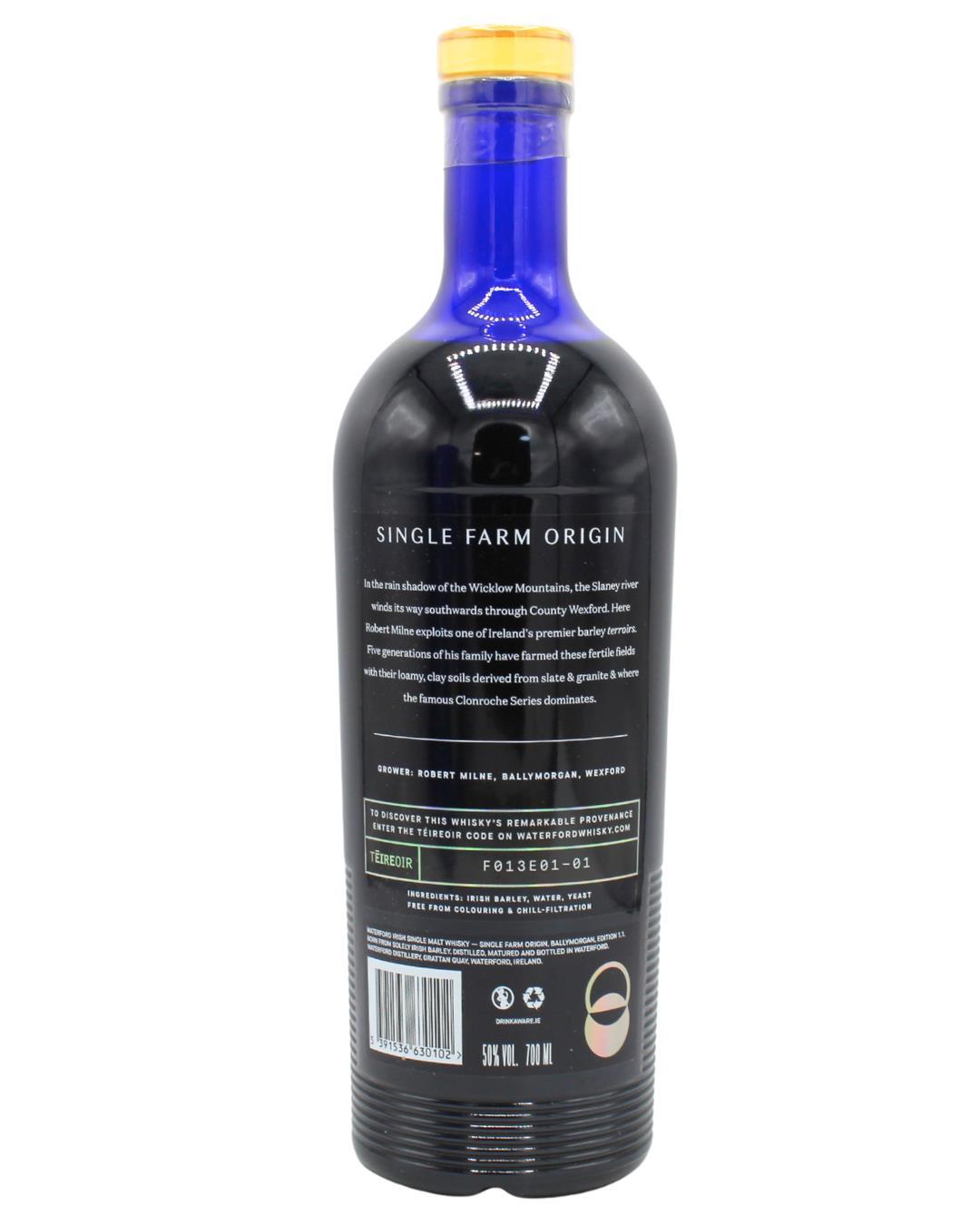 The barley used to make Waterford Ballymorgan 1.1 Single Farm Origin Irish whiskey was grown in County Wexford, just an hour away from the distillery and matured in a combination of French and American oak casks.