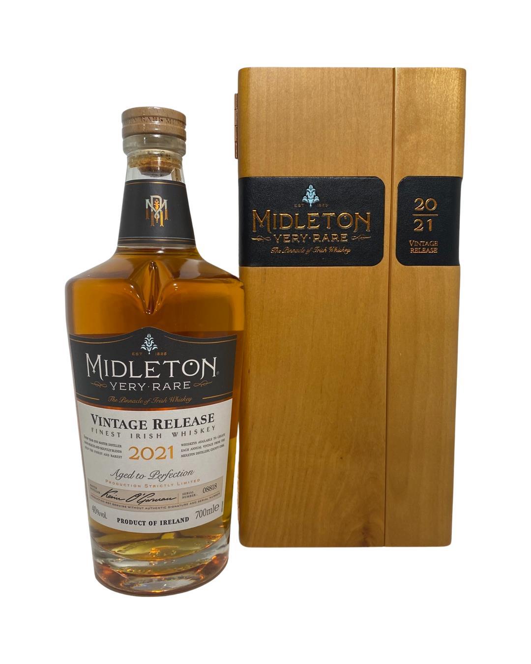 The 2021 edition to Ireland's most premium and beloved whiskey series; Midleton Very Rare. This is the 38th installment and the first release under Kevin O' Gorman appointed Master Distiller of the Midleton Distillery in 2020. Both the bottle and gift box are in very good condition, certificate and distillery invite are also included.