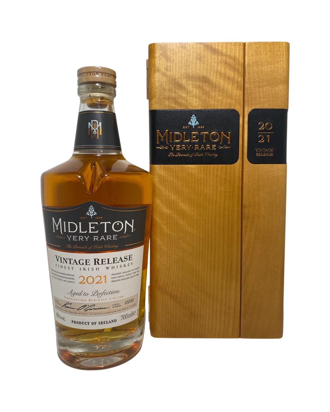 The 2021 edition to Ireland's most premium and beloved whiskey series; Midleton Very Rare. This is the 38th installment and the first release under Kevin O' Gorman appointed Master Distiller of the Midleton Distillery in 2020. Both the bottle and gift box are in very good condition, certificate and distillery invite are also included.