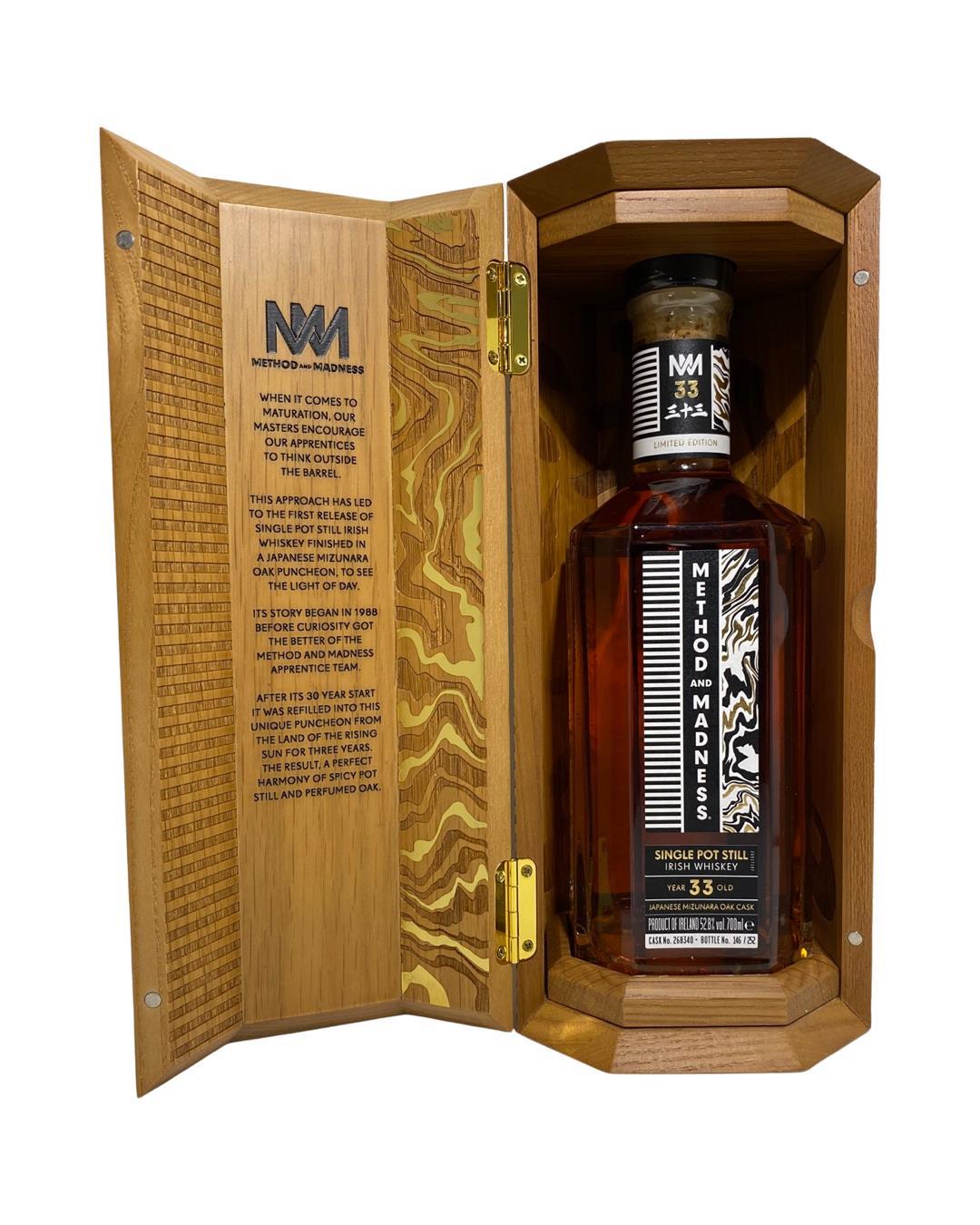 This release of the ever-popular Mildeton's Method & Madness series sees a first with Irish single pot still finished in the rarest of oaks: Japanese Mizunara oak. A 30 year old Single Pot Still was matured in bourbon barrels for thirty years and then aged for a total of three years in this unique Mizunara puncheon from the land of the rising sun. The result is a whiskey overflowing with enticing vanilla, nutmeg, wood tannins, and all that single pot still spicy goodness. Launched in 2017, the Method and Madness range of whiskeys (and gin) aims push the boundaries of traditional spirit-making, combining both time-honored methods and daring approaches. The whiskeys feature a diverse selection of styles that showcase unique cask finishes, grain experimentation, and blending techniques. With each expression, Method and Madness give the whiskey connoisseur the chance to try something new and innovative, often featuring bold and new flavours not previously encountered.
