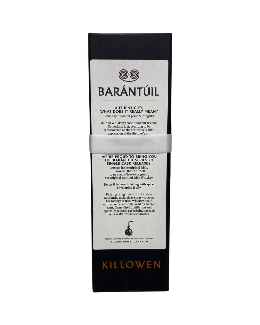 Being one of the most sought after bottles for collections with the likes of their dalriadan series and the experimental series Barantúil was sure to be no different.Killowen Barántúil Cask #KD024 is 3 year old mixed mash bill Irish whiskey bottled at a cask strength of 60.14% abv.