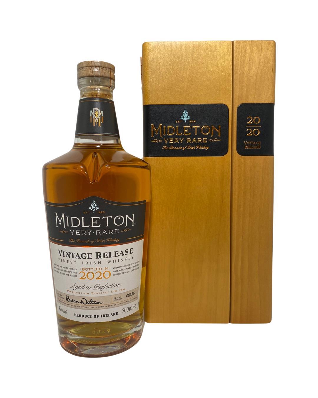 The 2020 edition to Ireland's most premium and beloved whiskey series; Midleton Very Rare. This is the 38th installment and the last release under Brian Nation appointed Master Distiller of the Midleton Distillery in 2014. Both the bottle and gift box are in very good condition, certificate and distillery invite are also included. The Midleton Very Rare range of whiskeys is a collection of highly regarded Irish whiskeys crafted at the Midleton Distillery in County Cork, Ireland. With a reputation for excellence, these whiskeys are known for their exceptional quality, craftsmanship, and limited availability. Characterized by smoothness, complexity, and depth of flavour, Midleton Very Rare often exhibits notes of ripe fruits, honey, vanilla, spices, and oak. The component casks are typically aged for around 12-27 years but each yearly batch is unique and for this reason the whiskeys are highly collectible. To this day the Midleton Very Rare series is still regarded as the pinnacle and benchmark for ultra-premium blended Irish whiskeys.