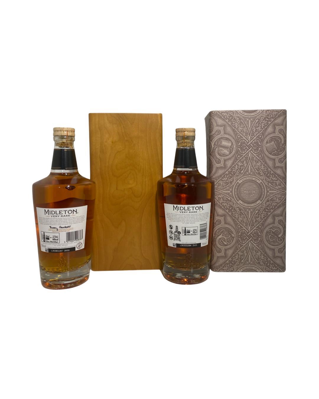 2 of the latest releases from the Midleton Very Rare Series. The 2022 edition to Ireland's most premium and beloved whiskey series; Midleton Very Rare. This is the 39th installment and the first release under Kevin O' Gorman appointed Master Distiller of the Midleton Distillery in 2020. Both the bottle and gift box are in very good condition, certificate and distillery invite are also included. The Midleton Very Rare range of whiskeys is a collection of highly regarded Irish whiskeys crafted at the Midleton Distillery in County Cork, Ireland. With a reputation for excellence, these whiskeys are known for their exceptional quality, craftsmanship, and limited availability. Characterized by smoothness, complexity, and depth of flavour, Midleton Very Rare often exhibits notes of ripe fruits, honey, vanilla, spices, and oak. The component casks are typically aged for around 12-27 years but each yearly batch is unique and for this reason the whiskeys are highly collectible. To this day the Midleton Very Rare series is still regarded as the pinnacle and benchmark for ultra-premium blended Irish whiskeys.The latest chapter of this renowned collection is adorned with the signature of Master Distiller, Kevin O’Gorman. After months of exploration, O’Gorman crafted a balanced blend of rare and hand-selected single pot still and single grain Irish whiskeys from Midleton’s exclusive inventory to create this truly special release. This years release has new more sustainable packaging. Showing the new way midleton is thinking to combat climate change. The Midleton Very Rare range of whiskeys is a collection of highly regarded Irish whiskeys crafted at the Midleton Distillery in County Cork, Ireland. With a reputation for excellence, these whiskeys are known for their exceptional quality, craftsmanship, and limited availability. Characterized by smoothness, complexity, and depth of flavour, Midleton Very Rare often exhibits notes of ripe fruits, honey, vanilla, spices, and oak. The component casks are typically aged for around 12-27 years but each yearly batch is unique and for this reason the whiskeys are highly collectible. To this day the Midleton Very Rare series is still regarded as the pinnacle and benchmark for ultra-premium blended Irish whiskeys.