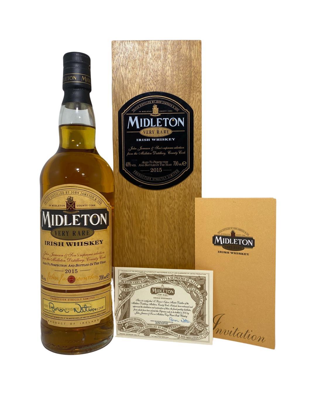 The Midleton Very Rare 2015, is a bottling brought out by the Midleton Distillery in Co. Cork. The ‘Midleton Very Rare’ range was launched in 1984 and a new vintage has been released every year since then. Barry Crockett started off the ‘Midleton Very Rare’ range while he was the Master Distiller of Midleton Distillery, in 2013 Barry Crockett retired from his role of Master Distiller. From 2014 onwards Brian Nation has been creating the ‘Midleton Very Rare’ range, maintaining its role as standard-bearer and pinnacle of Irish Whiskey. The bottle and gift box in great condition also include the cert and distillery invite. The Midleton Very Rare range of whiskeys is a collection of highly regarded Irish whiskeys crafted at the Midleton Distillery in County Cork, Ireland. With a reputation for excellence, these whiskeys are known for their exceptional quality, craftsmanship, and limited availability. Characterized by smoothness, complexity, and depth of flavour, Midleton Very Rare often exhibits notes of ripe fruits, honey, vanilla, spices, and oak. The component casks are typically aged for around 12-27 years but each yearly batch is unique and for this reason the whiskeys are highly collectible. To this day the Midleton Very Rare series is still regarded as the pinnacle and benchmark for ultra-premium blended Irish whiskeys.