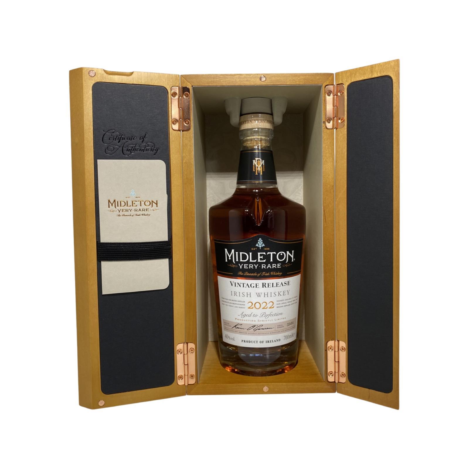 The 2022 edition to Ireland's most premium and beloved whiskey series; Midleton Very Rare. This is the 39th installment and the first release under Kevin O' Gorman appointed Master Distiller of the Midleton Distillery in 2020. Both the bottle and gift box are in very good condition, certificate and distillery invite are also included. Bottle number