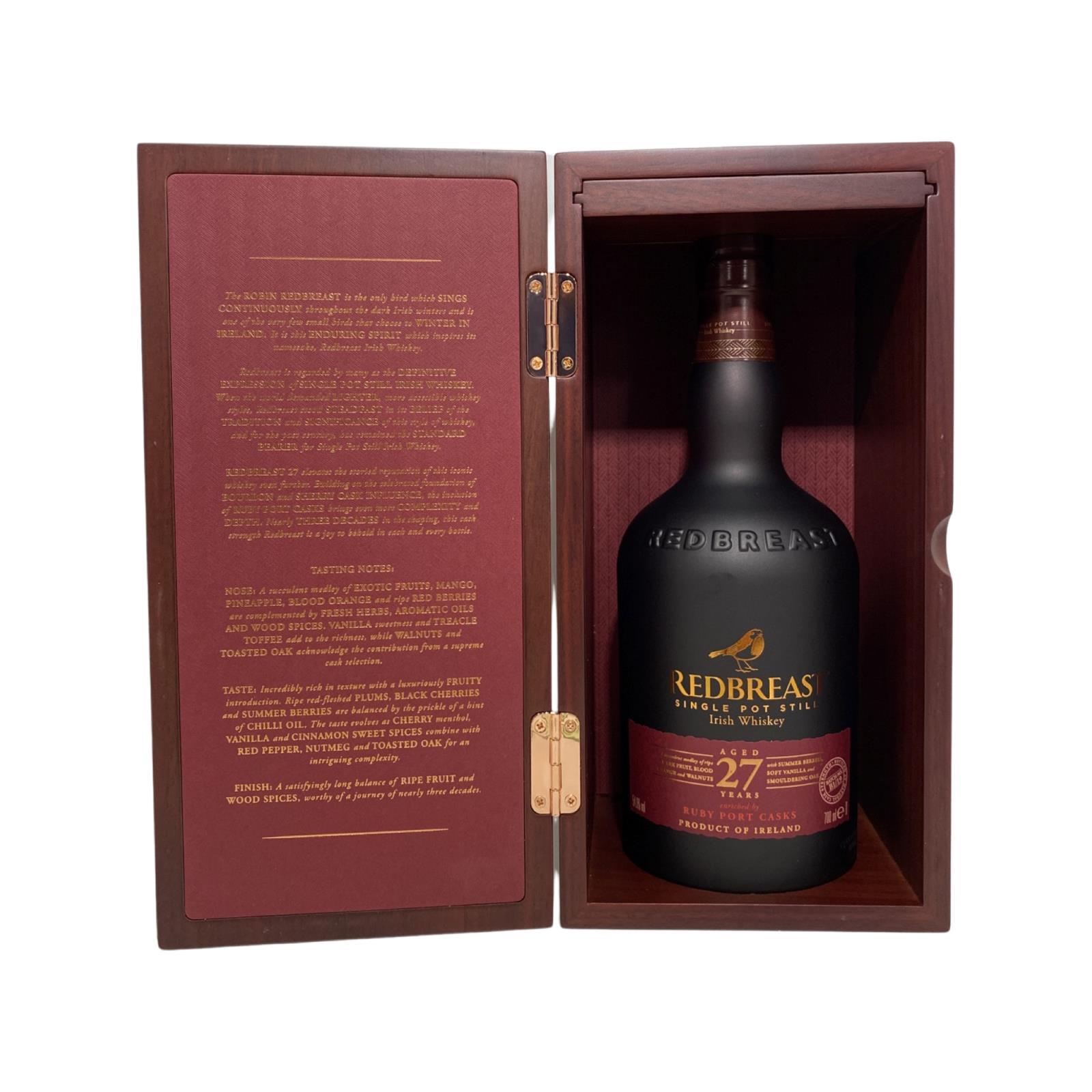 The oldest permanent release in the Redbreast family. Redbreast 27 years old builds on the traditional Sherry & Bourbon finish by adding a Port finish which brings even more complexity and depth.