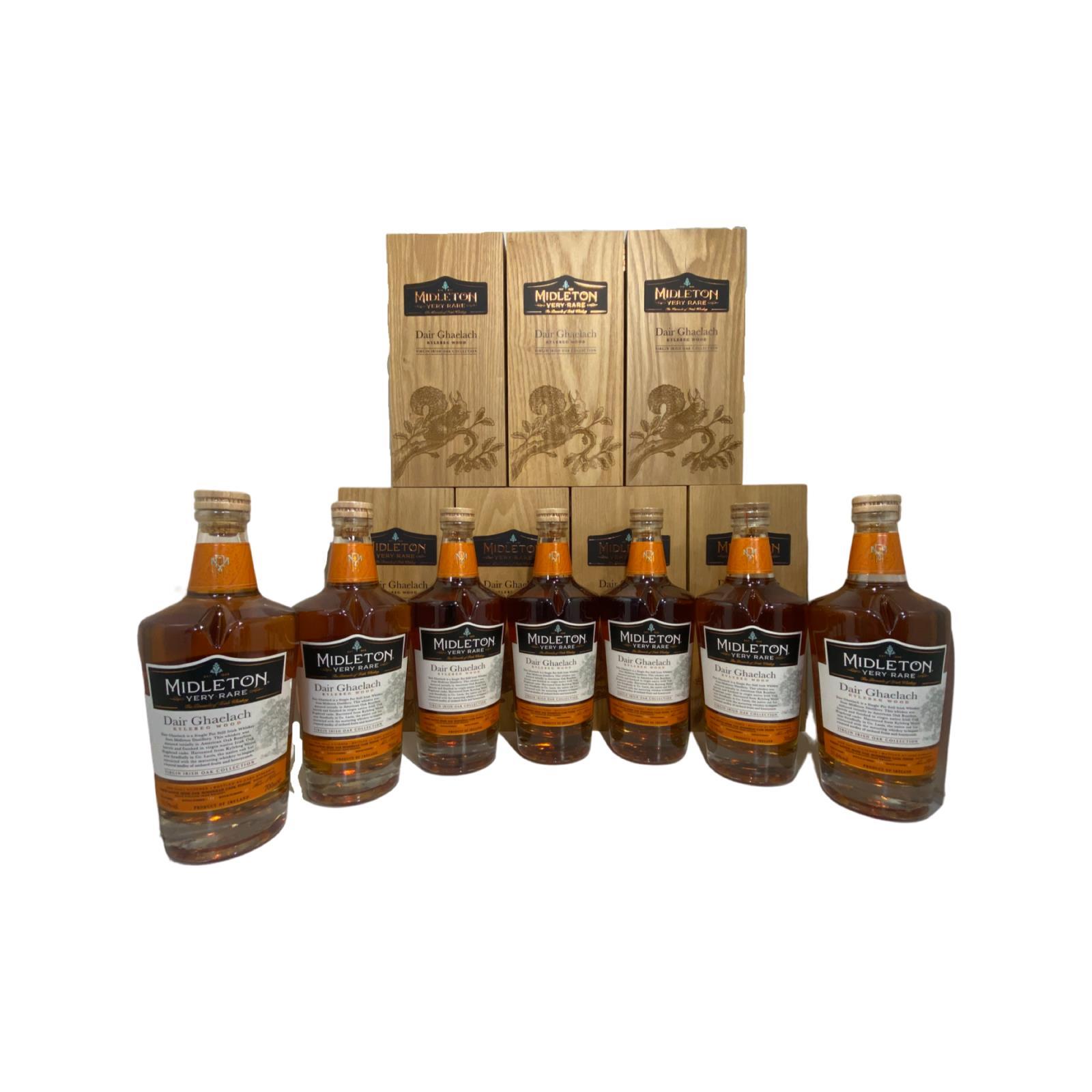 These 7 whiskeys have been finished in casks made from virgin Irish oak grown in Kylebeg Wood on the Ballykilcavan Estate, near Stradbally in Co. Laois.The oak influences these special whiskeys with the unique flavour of the heart of Ireland. Each of these Irish oak casks has then matured selected Midleton Whiskies between 13 and 26 years old. These are single pot still whiskies, first matured in our traditional American Oak Bourbon Barrels before being transferred to this native Irish oak. Full set includes seven bottles Trees 1-7.