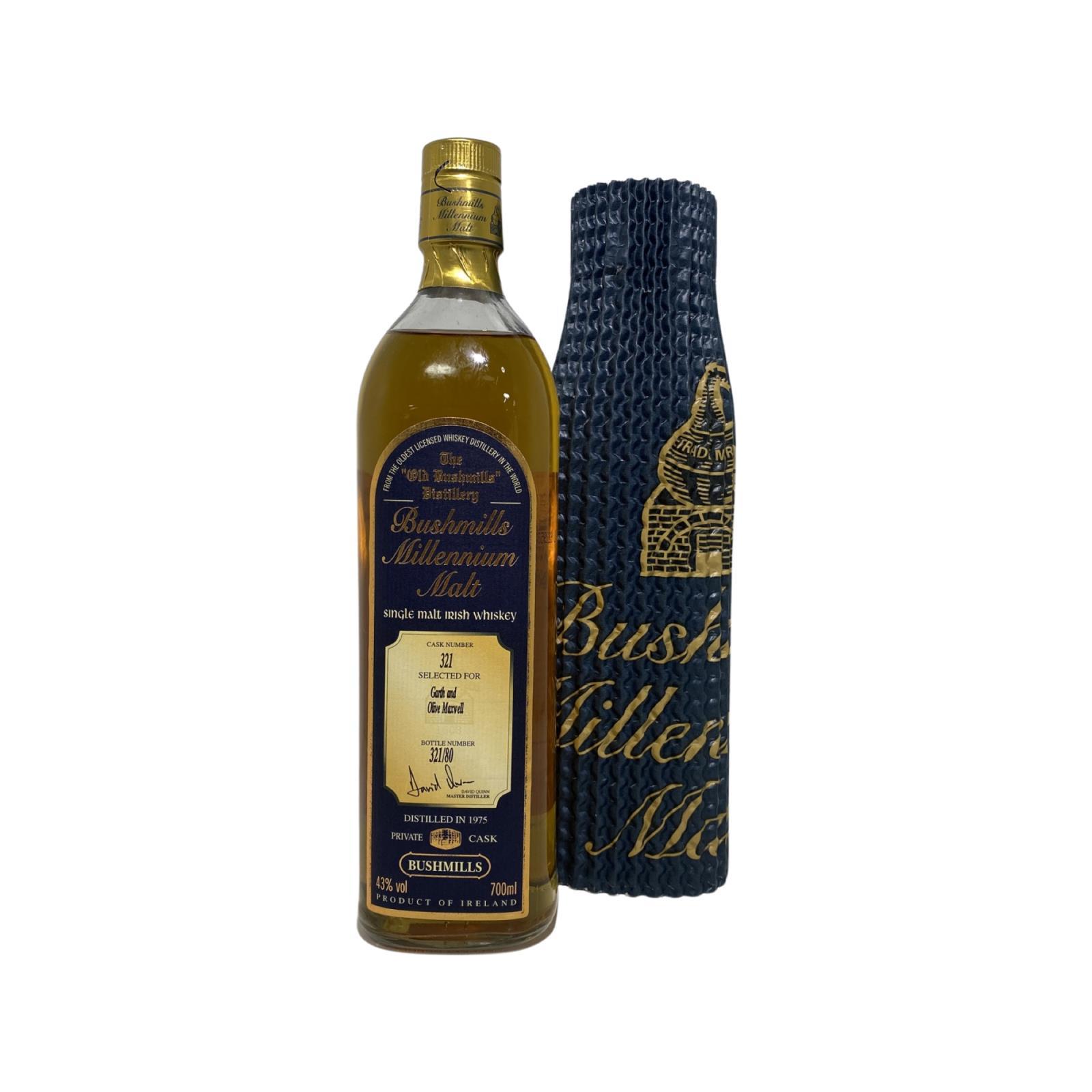Bushmills whiskey available then, with this exceptional cask being 227.Bushmills Millennium Malt is a series of single cask bottlings from whiskey distilled in 1975 and matured in ex-Bourbon barrels. This unique Bushmills Millennium Malt has come straight from the cask, pure and unfiltered, following the ancient tradition that is whiskey making in Ireland. The addition of water, which flows over the basalt rock from St. Columbs Rill, to bring it to its bottled strength, is the only change Bushmills have made to your whiskey since it began the slow gentle process of maturation in your cask, back in 1975.