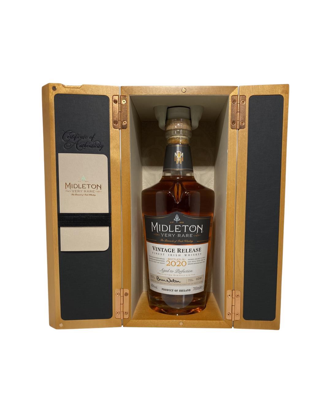 The 2020 edition to Ireland's most premium and beloved whiskey series; Midleton Very Rare. This is the 38th installment and the last release under Brian Nation appointed Master Distiller of the Midleton Distillery in 2014. Both the bottle and gift box are in very good condition, certificate and distillery invite are also included.Bottle number 3749