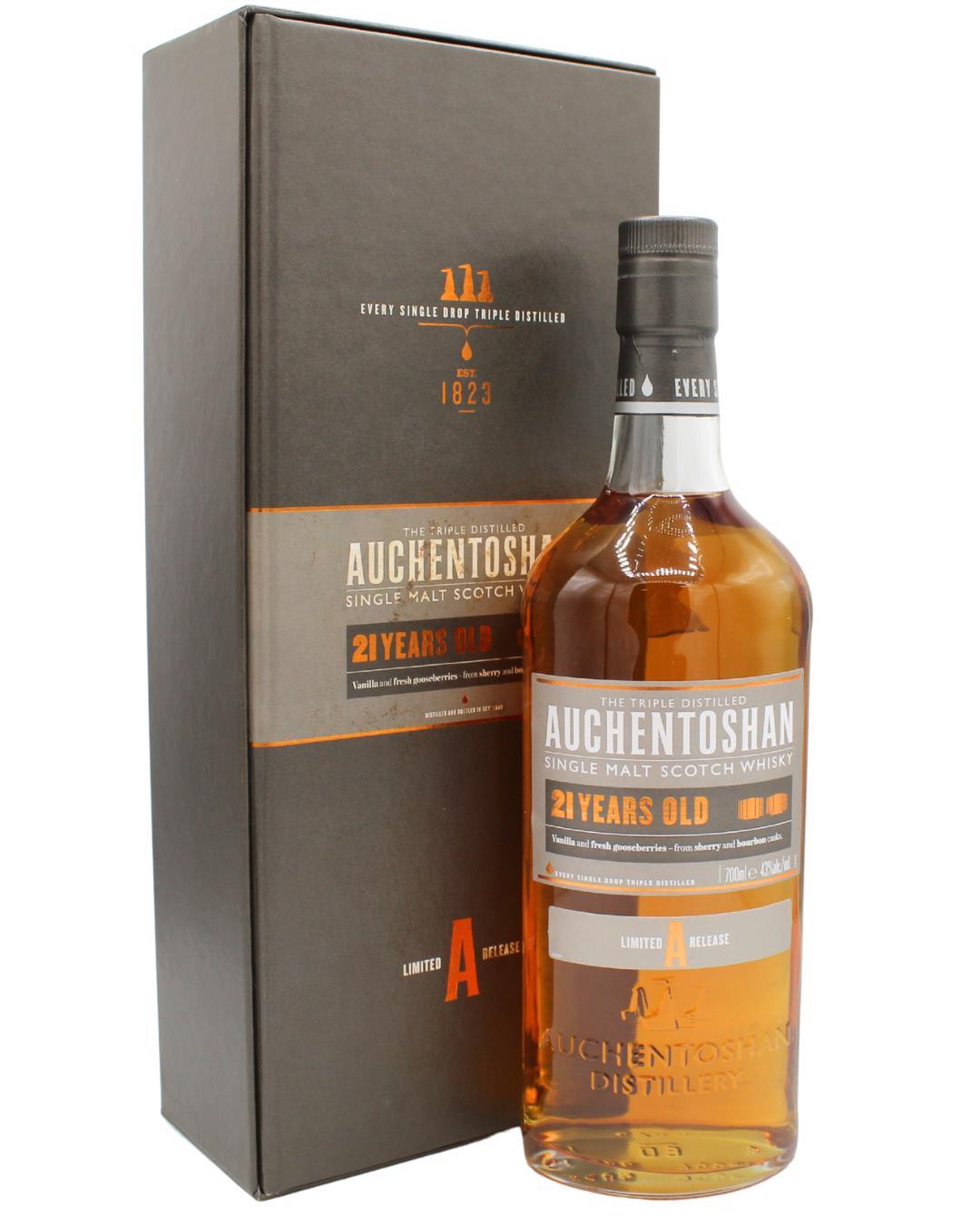 Described by Jim Murray as 'One of the finest Lowland whiskies of our time' in the 2010 Whisky Bible. This is certainly one of the best Auchentoshan whiskies we have tried. Ageing takes place in refill sherry casks for the entire 21 years, but the sherry never overpowers the superb Auchie malt. Auchentoshan is one of a handful of Scottish distilleries that triple distil.