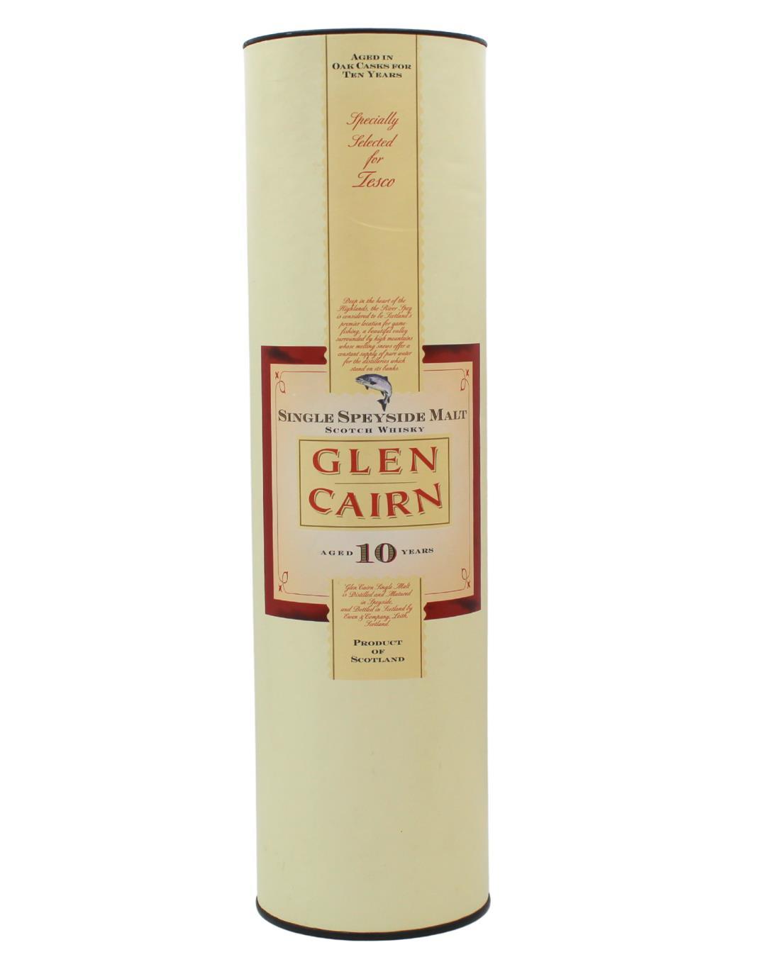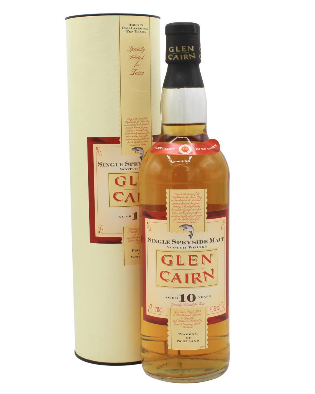 A bottle of Glen Cairn 10 Year Old Single Highland Malt Whisky, bottled for the UK supermarket chain Tesco in the 90s.