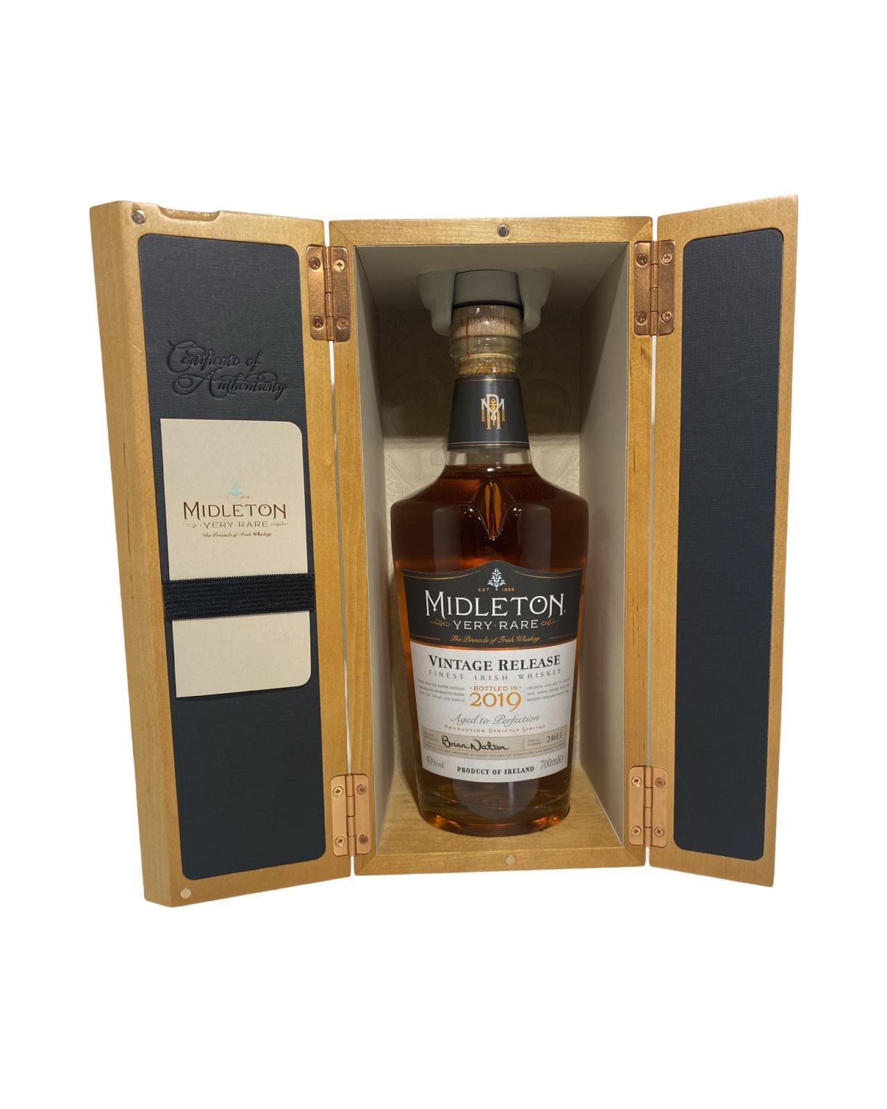 The Midleton Very Rare 2019, is a bottling brought out by the Midleton Distillery in Co. Cork. The ‘Midleton Very Rare’ range was launched in 1984 and a new vintage has been released every year since then. Barry Crockett started off the ‘Midleton Very Rare’ range while he was the Master Distiller of Midleton Distillery, in 2013 Barry Crockett retired from his role of Master Distiller. From 2014 onwards Brian Nation has been creating the ‘Midleton Very Rare’ range, maintaining its role as standard-bearer and pinnacle of Irish Whiskey. The bottle and gift box in great condition also include the cert and distillery invite.