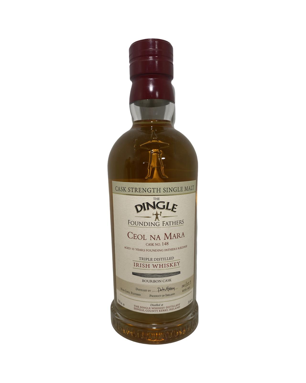 Dingle Founding Father Cask No. 148 - 'Ceol Na Mara'. Cask Strength Single Malt. Aged for 10 Years, triple distilled, Bourbon Cask. Established in 2012, Dingle has quickly gained recognition for its exceptional spirits and commitment to traditional craftsmanship. The distillery focuses on producing small-batch, handcrafted whiskies that embody the rich heritage of Irish whiskey-making. Concentrating on Single Pot Still and Single Malt whiskey production the company has won many awards in the short time it has been operating, whilst garnering a multitude of followers who are keen to sample the excellent small-batch releases. Dingle has recently started to bring out some semi-permanent releases as part of the ‘Celtic Series’ with each of these celebrating the seasonal Celtic festivals such as Samhain, La le Bride and Bealtaine