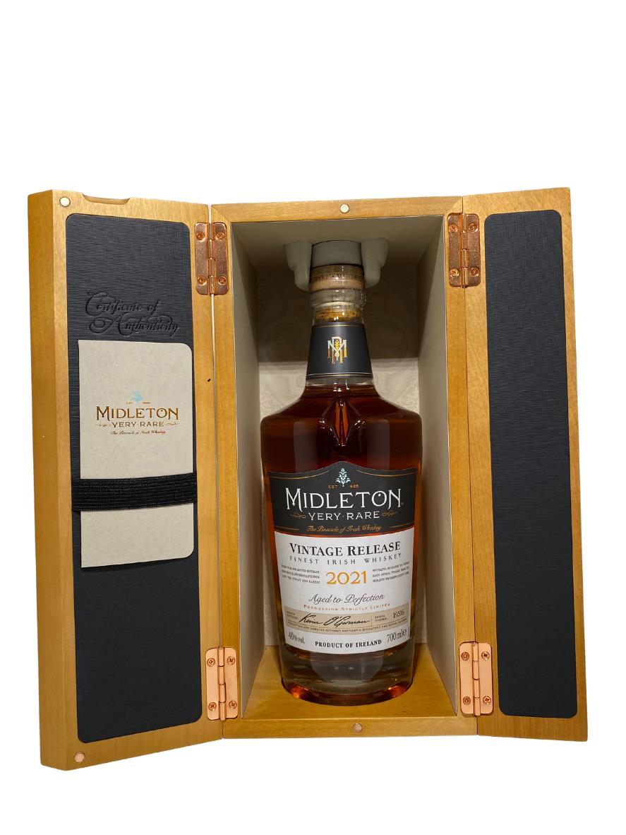 The 2021 edition to Ireland's most premium and beloved whiskey series; Midleton Very Rare. This is the 38th installment and the first release under Kevin O' Gorman appointed Master Distiller of the Midleton Distillery in 2020. Both the bottle and gift box are in very good condition, certificate and distillery invite are also included.Bottle number 19516