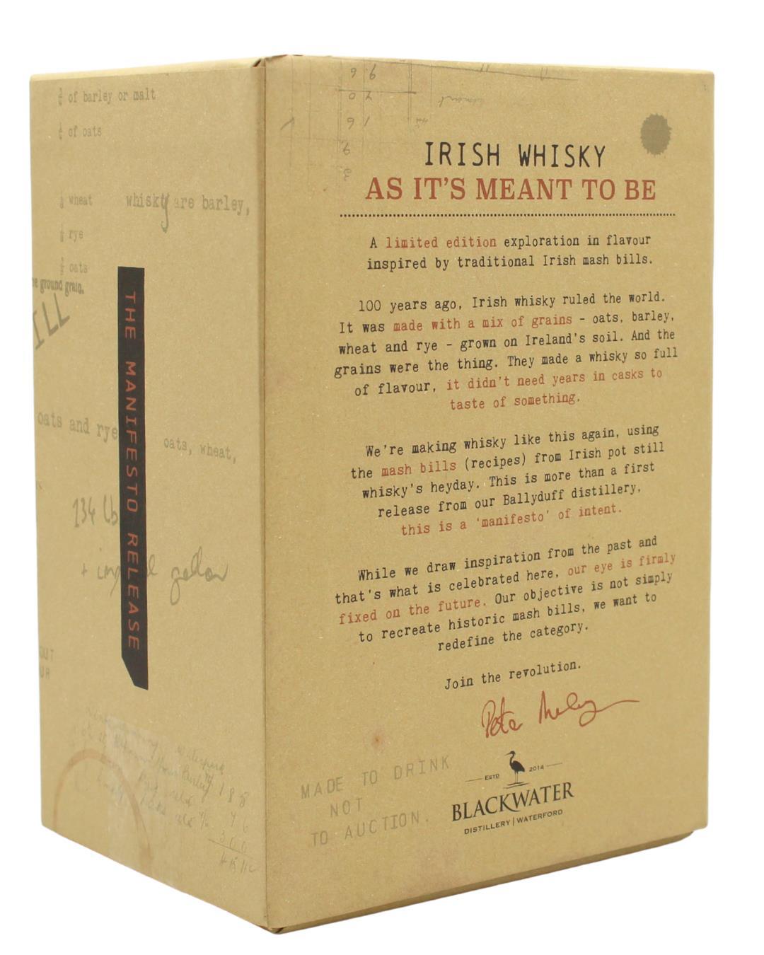 A special limited first release from Blackwater Distillery that explores the historical mashbills of old. Each of the four whiskeys included is the recreation of a style once made in Ireland and includes different mixes of grains in each bottling. Inspired by the historical research by Peter Mulryan over the past decades, these four whiskeys include classic mixes of malted barley, unmalted barley, oats, wheat and rye. These, at the time of the original recipes would have been known by the distillers as pot still whiskey (now expanded to be 'Single Pot Still' whiskey) however due to the modern interpretation of this style they cannot currently be labelled as Single Pot Stills. That is something that will likely change in the coming years however! The range here includes 20cl bottles of the following mashbills: Mashbill #08- Inspired by a 1908 recipe. Made from 50% malted Laureate Barley, 35% Laureate Barley (unmalted) and 15% Husky oats. Mashbill #15- Inspired by a 1915 recipe. Made from 40% Laureate Barley (unmalted), 30% malted Laureate Barley, 15% Husky oats, 12% Costello Wheat and 3% Performer Rye. Mashbill #25- Inspired by an 1838 recipe. Made from 40% Laureate Barley (unmalted), 40% Costello Wheat and 20% unmalted Gangway and Laureate Barley. Mashbill #93- Inspired an 1893 recipe. Made from 46% Laureate Barley (unmalted), 35% Malted Gangway and Laureate Barley, 15% Husky Oats and 4% Peated Laureate Malted Barley. Each box includes a booklet or Manifesto about Blackwater's intent on redefining the categorisation of single pot still Irish whiskey.