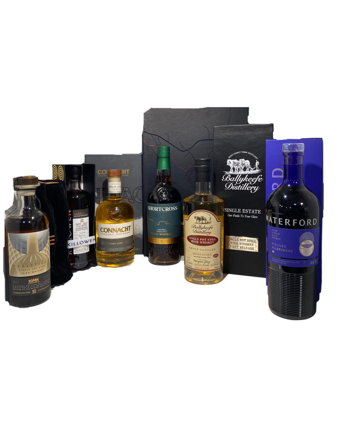 For fans of Inaugural Releases this is the perfect collection for you. 6 bottles from some of Irelands newer distillerys. Distilled on the Winter Solstice of 2019 and bottled on the Winter Solstice of 2022, Boann Distillery’s first aged Pot Still Irish Whiskey distilled in Drogheda in over 160 years. In 2019, the single pot still distillate was filled into different wine and spirit casks, including: NEOC (New Era of Oak Cask), PX, Armagnac, Sauternes, Moscatel, Chardonnay, Bordeaux, Rum and Marsala, and matured in the solitude of the distillery.The first bottles of ‘Solstice’, matured on site, came from a Pedro Ximenez hogshead 250ltr cask.The bottle design is a celebration of darkness into light, inspired by the Winter Solstice and the passing of time. Waterford The 1st Cuvée was created by head distiller Ned Gahan and is made up of whisky from the 36 farms that Waterford have worked with in their first year. It was originally released on Saturday 25th April 2020 and was strictly limited to 1,000 bottles. Ballykeefe Distillery, located in Kilkenney, is a family-owned Single Estate Whiskey Distillery, built in 2016 and began distilling whiskey in 2017. The whiskey is triple distilled from barley grown and harvested on the family farm. The Ging family have long standing family tradition of farming which goes back centuries. The whiskey is distilled in Irish designed, Italian made, copper stills, using deep well Ballykeefe water. The first release of seven individually bottled casks of Single Pot Still includes 986 bottles at 46% ABV. Only 700 of these special celebration bottles have been released so far. The first whiskey to be produced in Mayo in over 150 years. The Connacht Distillery has been handcrafted and barrel-aged onsite at the distillery’s location on the banks of the River Moy. Maturing in a combination of Kentucky Bourbon & Oloroso Sherry Barrels. Just 800 bottles have been released. The first inaugural release of Shortcross Irish Whiskey. This unique release is the first Irish Whiskey to be wholly distilled and released by a new Irish Whiskey distillery in Northern Ireland since the 1920’s and the first whiskey to be released outside of the Old Bushmills Distillery since the closure of the Old Comber and Coleraine distilleries. This whiskey was double distilled on Rademon Estate Distillery’s original 450L copper pot still which at the time was the smallest whiskey still in use on the island of Ireland.