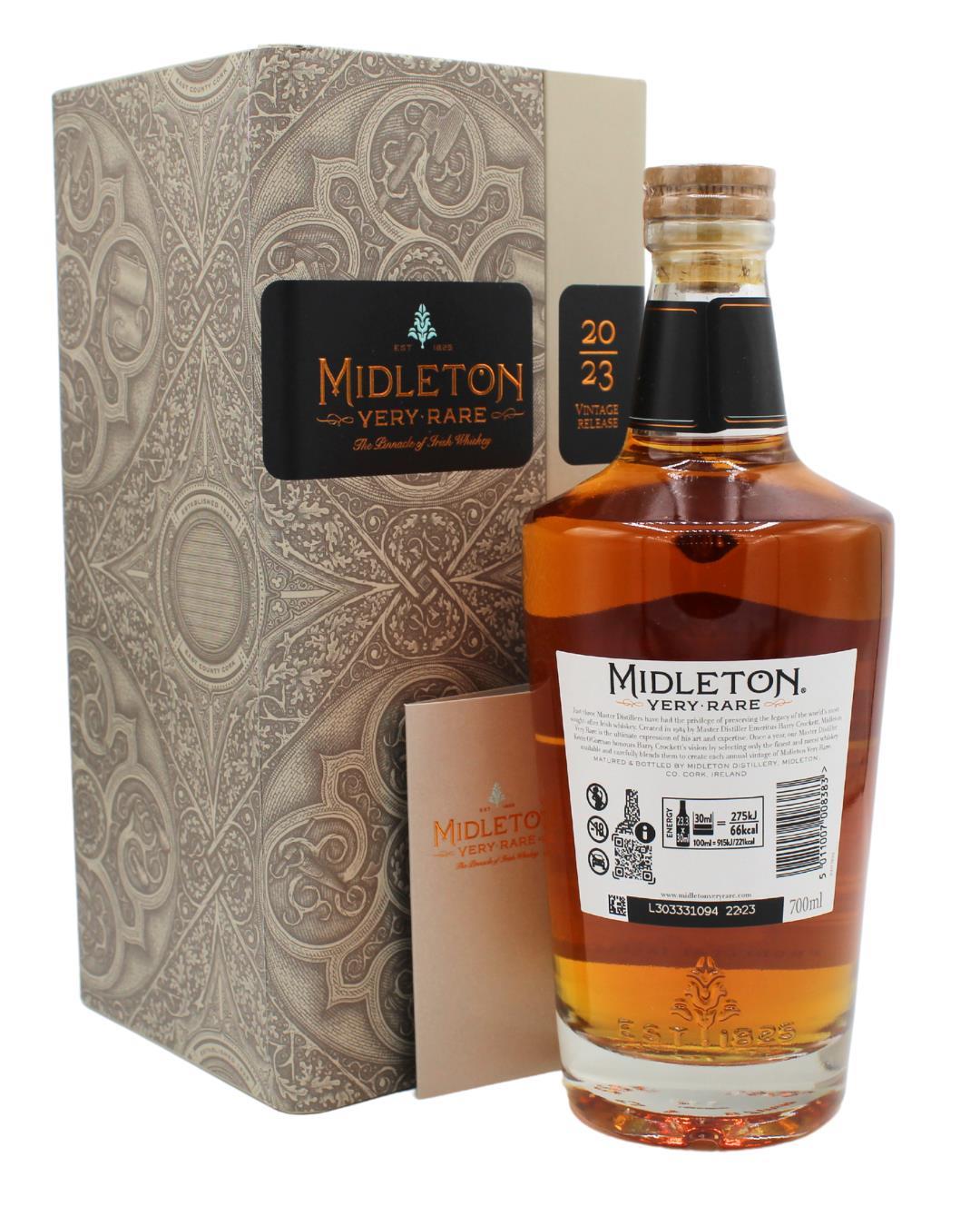 The 2023 release of the Midleton Very Rare collection complete with certificate of authenticity. The Midleton Very Rare range is a prestigious collection of premium Irish whiskeys crafted at the Midleton Distillery in County Cork. Renowned for exceptional quality and limited availability, each annual release is unique, typically blending casks aged 12 to 27 years. Known for its smoothness, depth, and layered notes of ripe fruit, honey, vanilla, spice, and oak, Midleton Very Rare remains the benchmark for top-tier blended Irish whiskey and a prized collectible among enthusiasts.
