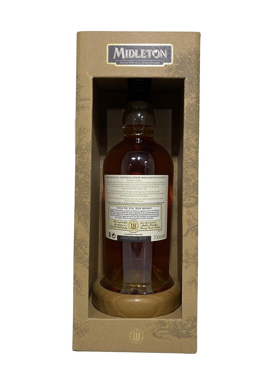 Midleton Dair Ghaelach, is the first ever Irish whiskey to be finished in virgin Irish Oak Hogsheads. This uniquely Irish expression is the latest addition to the Midleton Single Pot Still family of whiskeys, satisfying the growing appetite among whisk(e)y lovers for discovering new and innovative styles of Single Pot Still Irish Whiskey. At Midleton, a selection of traditional Single Pot Still Irish Whiskey distillates, matured for between 15 and 22 years in ex-Bourbon casks, were married together before being filled into native Irish Oak Hogsheads harvested from 130 year old oak trees from Grinsell’s Wood, within the Ballaghtobin Estate in Co. Kilkenny. This special whiskey is the true and unique flavour of Ireland. Its provenance as individual as its fragrance, its journey from grain to glass as distinguished as its finish. This bottle was made from whiskey matured in wood from tree number 4.