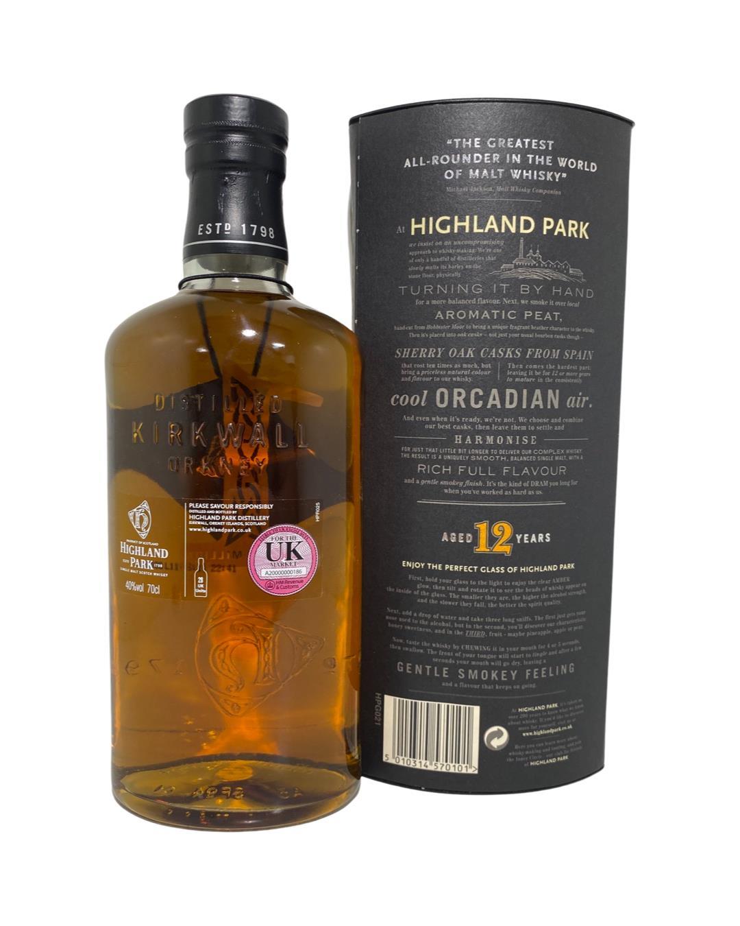 A celebration bottling for 1 million cases of Highland park sold. This is highland park 12. One of the most complex of all standard expression whiskies. The Highland Park 12 Year Old has a little bit of everything with a characteristic heather and honey note and some well balanced peat smoke.