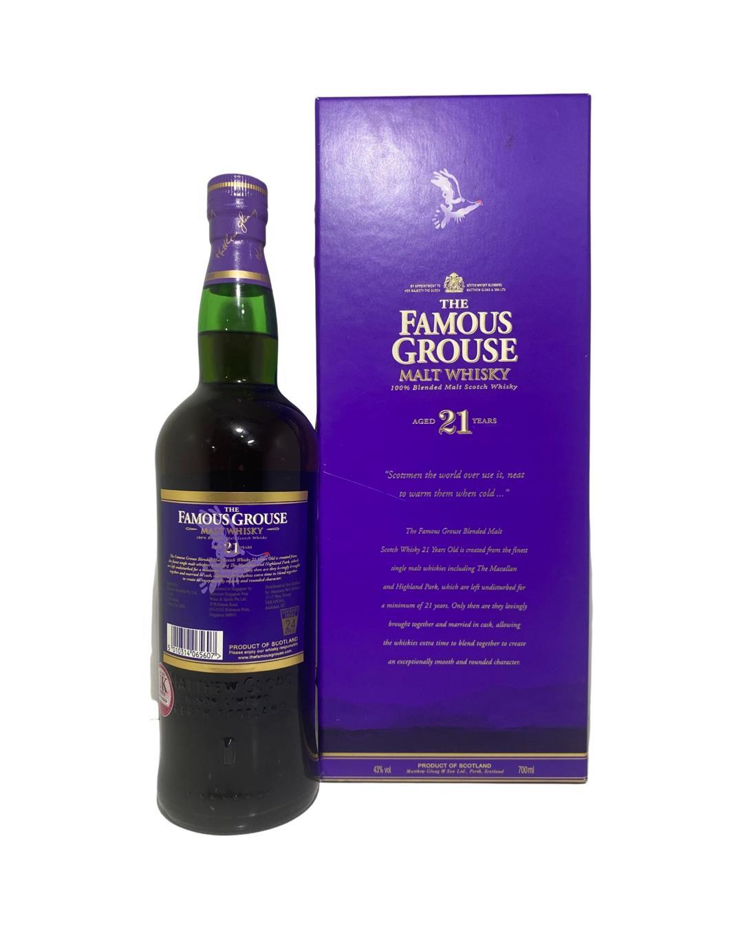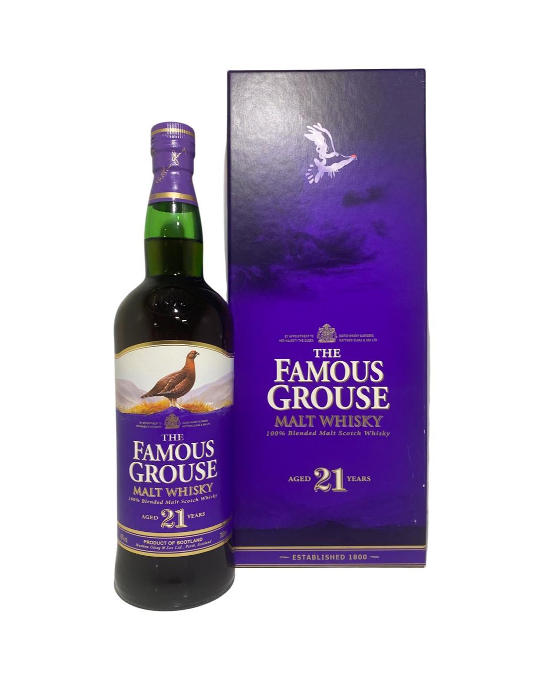 The Famous Grouse is a brand of blended Scotch whisky, first produced by Matthew Gloag & Son in 1896, and currently produced and owned by The Edrington Group.A 21 year old, of the popular blend; Famous Grouse in a purple presentation box.Glenturret Distillery holds the distinction of being one of Scotland's oldest licensed distilleries, with origins dating back to 1775. Located near Crieff, Perthshire, Glenturret has a fascinating history that has shaped its reputation.