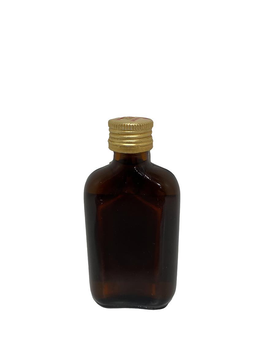 This very old and rare bottle of Jameson whiskey dates back to the 1960s, when Jameson whiskey was still made at the Bow Street distillery in the centre of Dublin. It bears its famous “Not a drop is sold till it’s seven years old” tagline. This is a mini bottle that does not state its size or alcohol percentage.