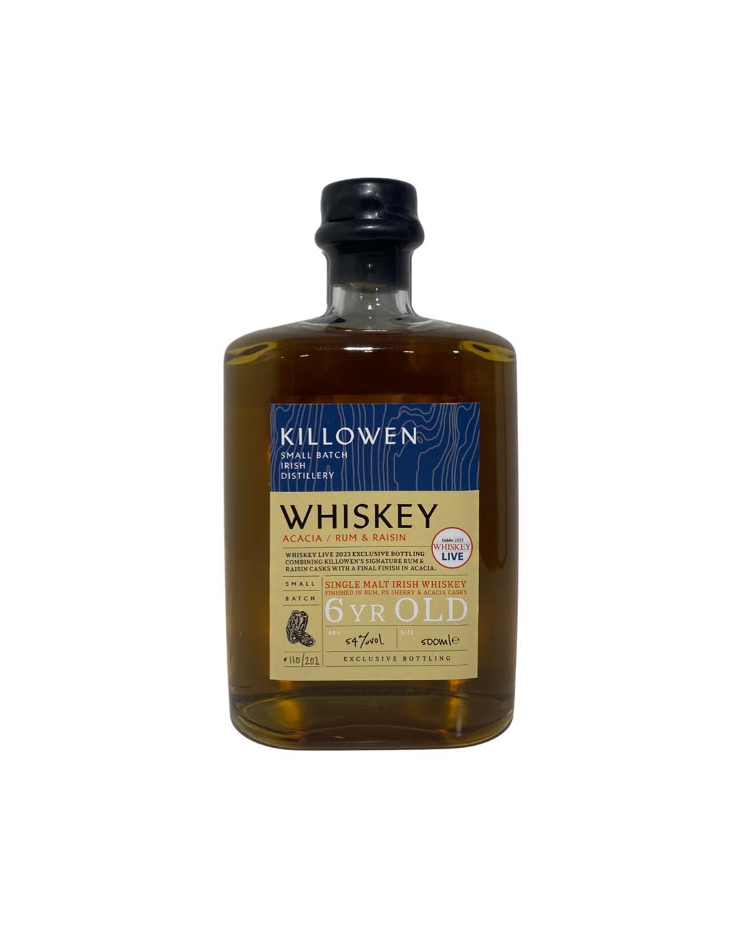 Released exclusively for Whiskey Live 2023 by Killowen. A single malt Irish whiskey aged for 5 years in Bourbon casks and finished in dark rum and PX sherry butts. The married together spending an additional 11 months in an Acacia cask.