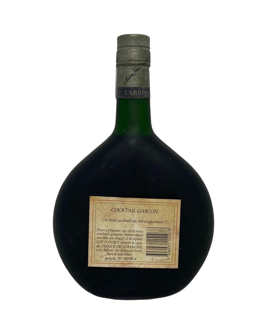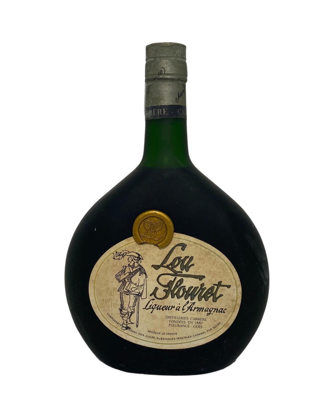 A bottle of Lou Flouret Armagnac Liqueur produced in France.