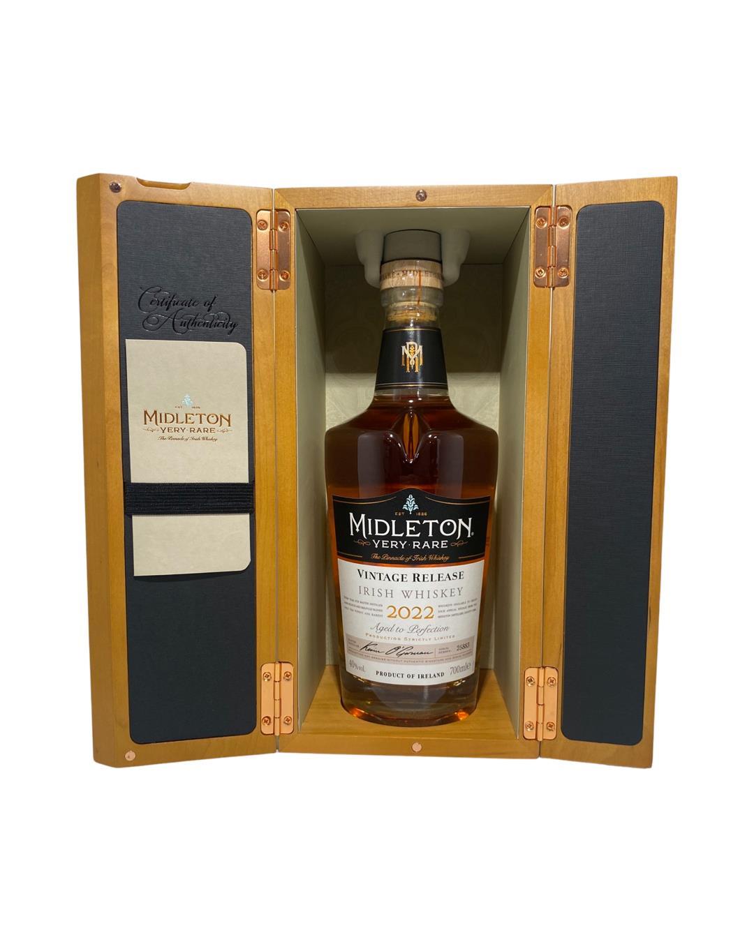 The 2022 edition to Ireland's most premium and beloved whiskey series; Midleton Very Rare. This is the 39th installment and the first release under Kevin O' Gorman appointed Master Distiller of the Midleton Distillery in 2020. Both the bottle and gift box are in very good condition, certificate and distillery invite are also included.