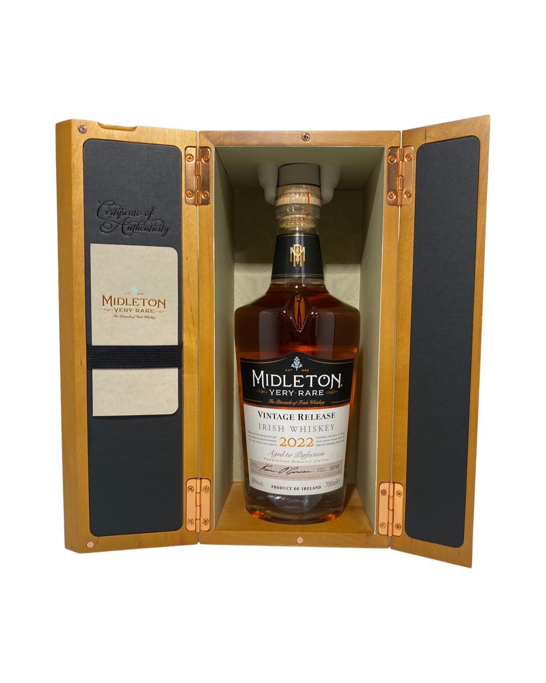 The 2022 edition to Ireland's most premium and beloved whiskey series; Midleton Very Rare. This is the 39th installment and the first release under Kevin O' Gorman appointed Master Distiller of the Midleton Distillery in 2020. Both the bottle and gift box are in very good condition, certificate and distillery invite are also included.