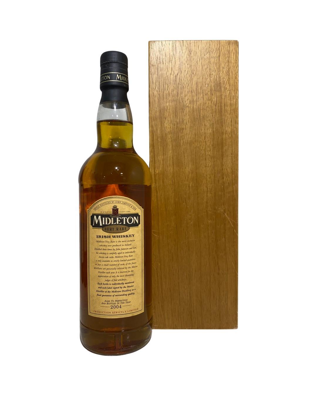 The Midleton Very Rare 2004, is a bottling brought out by the Midleton Distillery in Co. Cork. The ‘Midleton Very Rare’ range was launched in 1984 and a new vintage has been released every year since then. Barry Crockett started off the ‘Midleton Very Rare’ range while he was the Master Distiller of Midleton Distillery, The bottle and box are in excellent condition and include the distillery invite and certificate.The Midleton Very Rare range of whiskeys is a collection of highly regarded Irish whiskeys crafted at the Midleton Distillery in County Cork, Ireland. With a reputation for excellence, these whiskeys are known for their exceptional quality, craftsmanship, and limited availability. Characterized by smoothness, complexity, and depth of flavour, Midleton Very Rare often exhibits notes of ripe fruits, honey, vanilla, spices, and oak. The component casks are typically aged for around 12-27 years but each yearly batch is unique and for this reason the whiskeys are highly collectible. To this day the Midleton Very Rare series is still regarded as the pinnacle and benchmark for ultra-premium blended Irish whiskeys.