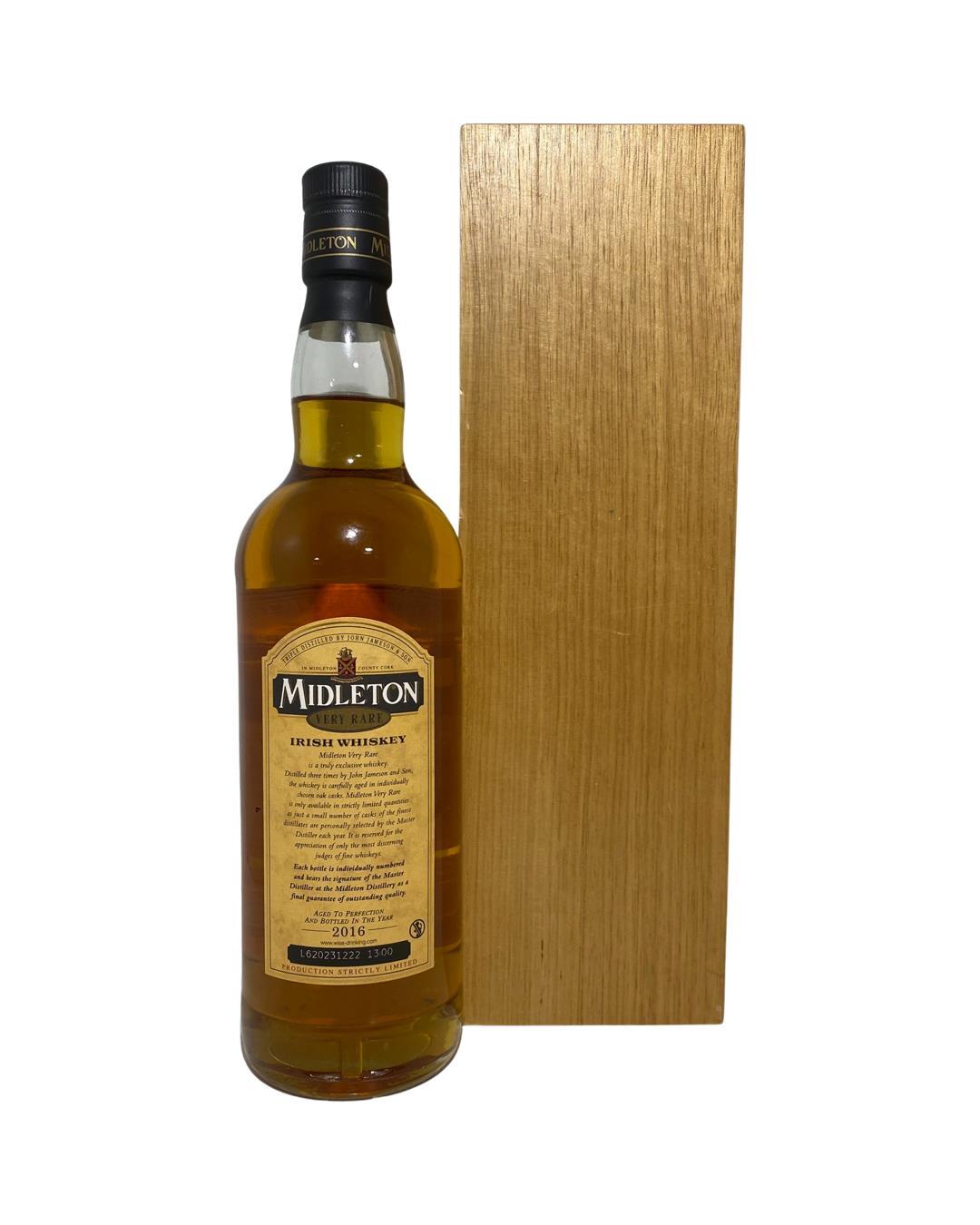 The Midleton Very Rare 2016, is a bottling brought out by the Midleton Distillery in Co. Cork. The ‘Midleton Very Rare’ range was launched in 1984 and a new vintage has been released every year since then. Barry Crockett started off the ‘Midleton Very Rare’ range while he was the Master Distiller of Midleton Distillery, The bottle and box are in excellent condition and include the distillery invite and certificate. The Midleton Very Rare range of whiskeys is a collection of highly regarded Irish whiskeys crafted at the Midleton Distillery in County Cork, Ireland. With a reputation for excellence, these whiskeys are known for their exceptional quality, craftsmanship, and limited availability. Characterized by smoothness, complexity, and depth of flavour, Midleton Very Rare often exhibits notes of ripe fruits, honey, vanilla, spices, and oak. The component casks are typically aged for around 12-27 years but each yearly batch is unique and for this reason the whiskeys are highly collectible. To this day the Midleton Very Rare series is still regarded as the pinnacle and benchmark for ultra-premium blended Irish whiskeys.