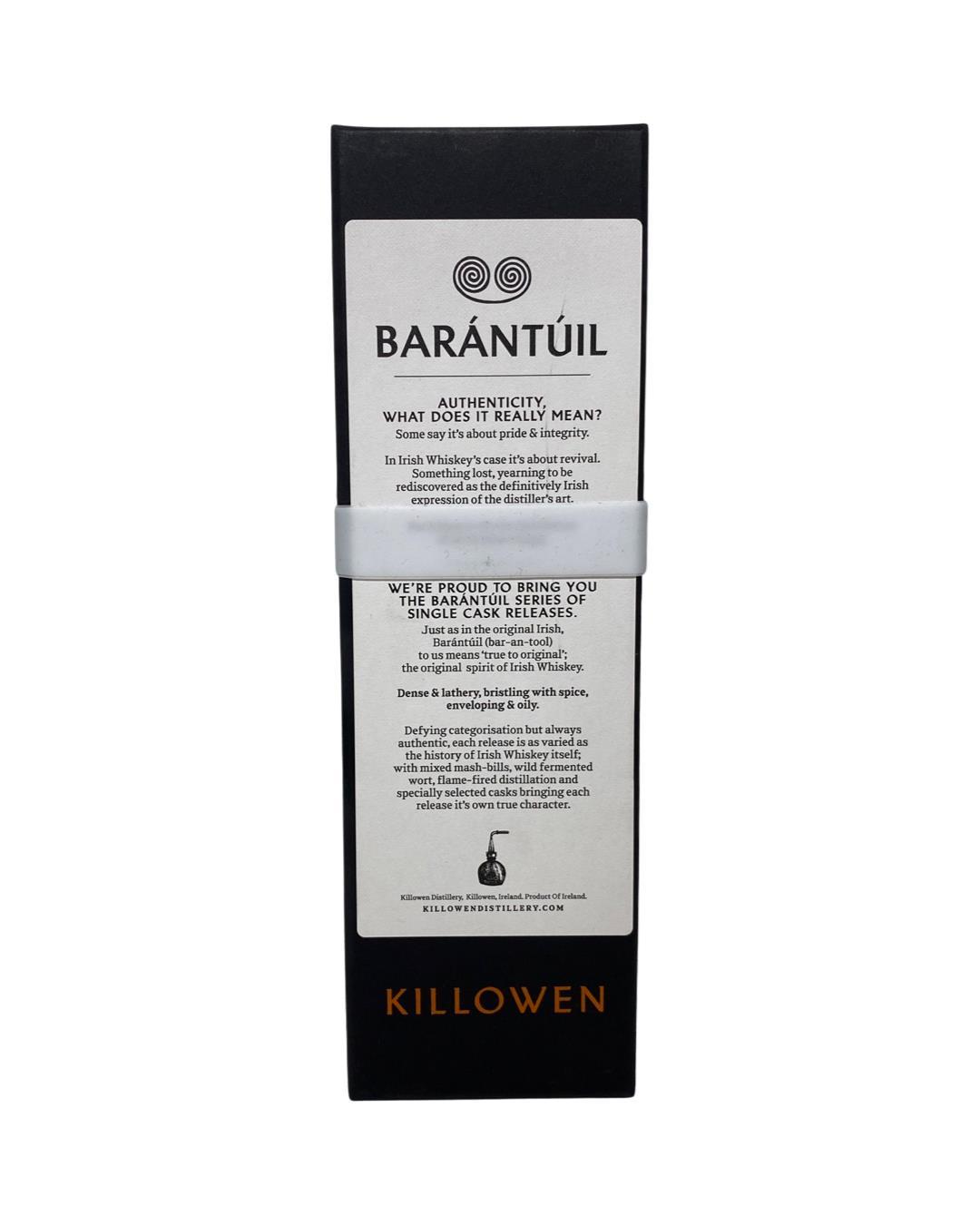 Being one of the most sought after bottles for collections with the likes of their dalriadan series and the experimental series Barantúil was sure to be no different.Killowen Barántúil Cask #KD024 is 3 year old mixed mash bill Irish whiskey bottled at a cask strength of 60.14% abv.
