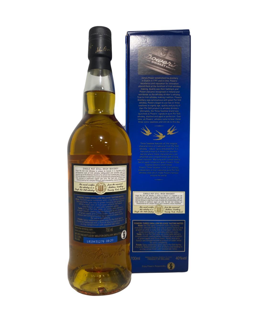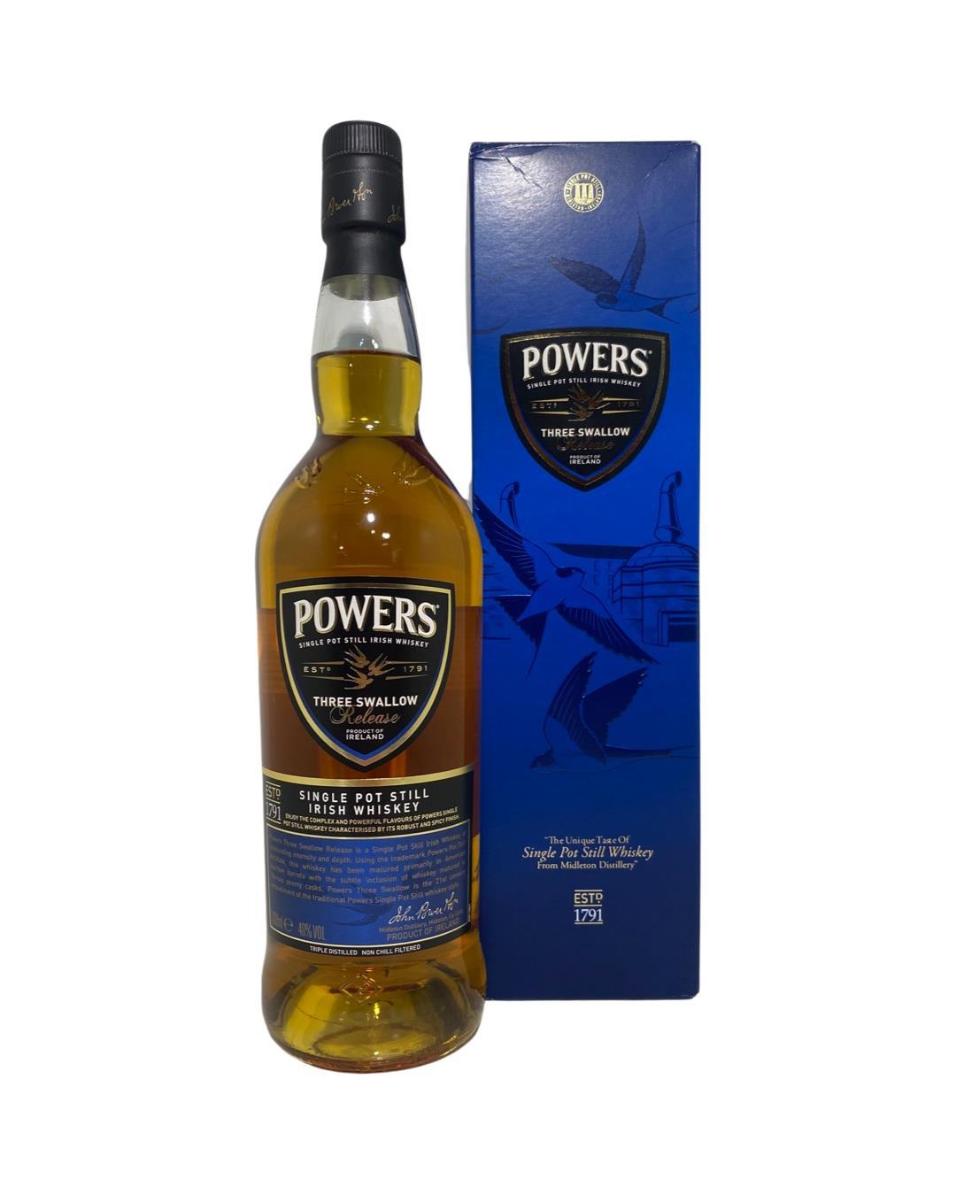 An older bottling of Powers Three Swallow single pot still whiskey. Released before the range was given a facelift.