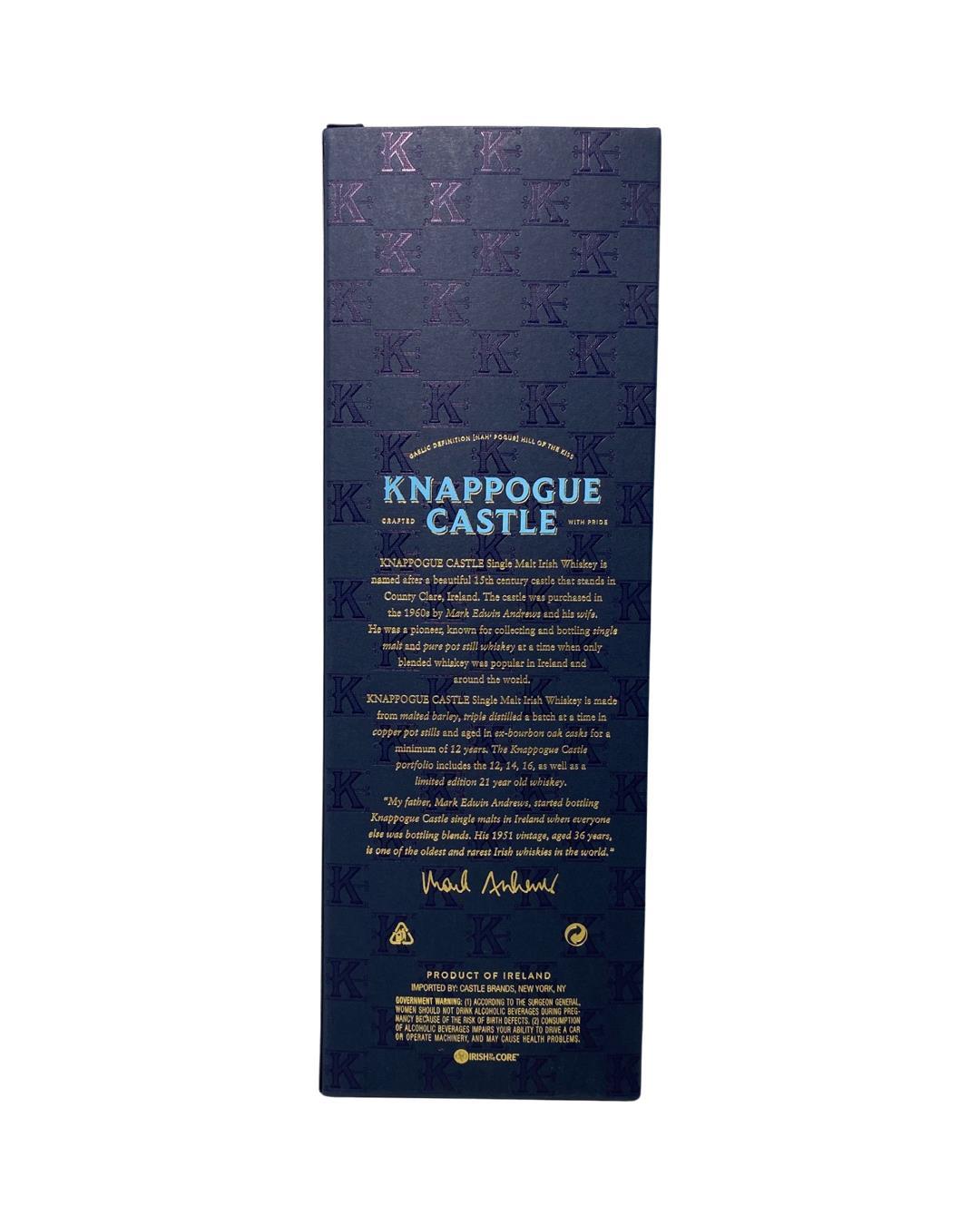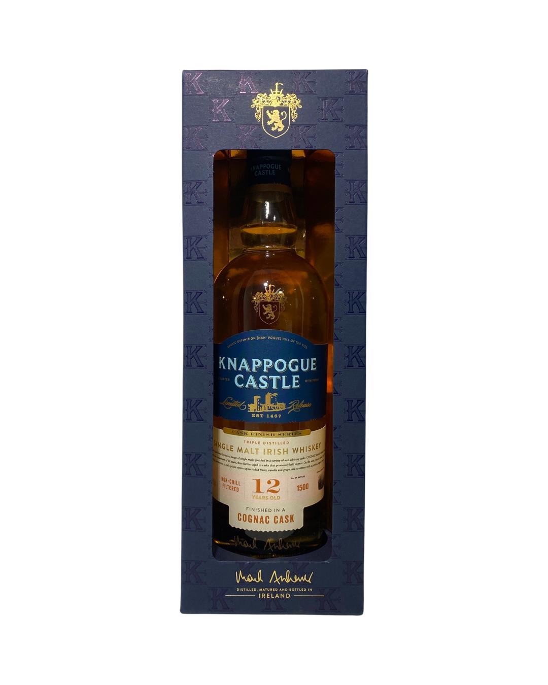 Part of the 'Cask Finish Series' from Knappogue Castle. This single malt is non-chill filtered, triple distilled, and aged for a minimum of 12 years in ex-bourbon barrels before being finished in Cognac Casks. Limited to just 1500 bottles