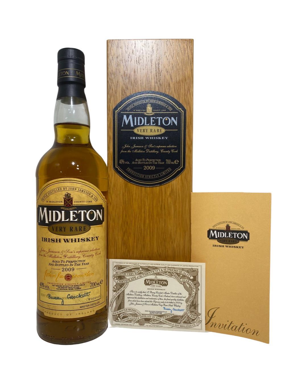 The Midleton Very Rare 2009, is a bottling brought out by the Midleton Distillery in Co. Cork. The ‘Midleton Very Rare’ range was launched in 1984 and a new vintage has been released every year since then. Barry Crockett started off the ‘Midleton Very Rare’ range while he was the Master Distiller of Midleton Distillery, The bottle and box are in excellent condition and include the distillery invite and certificate.