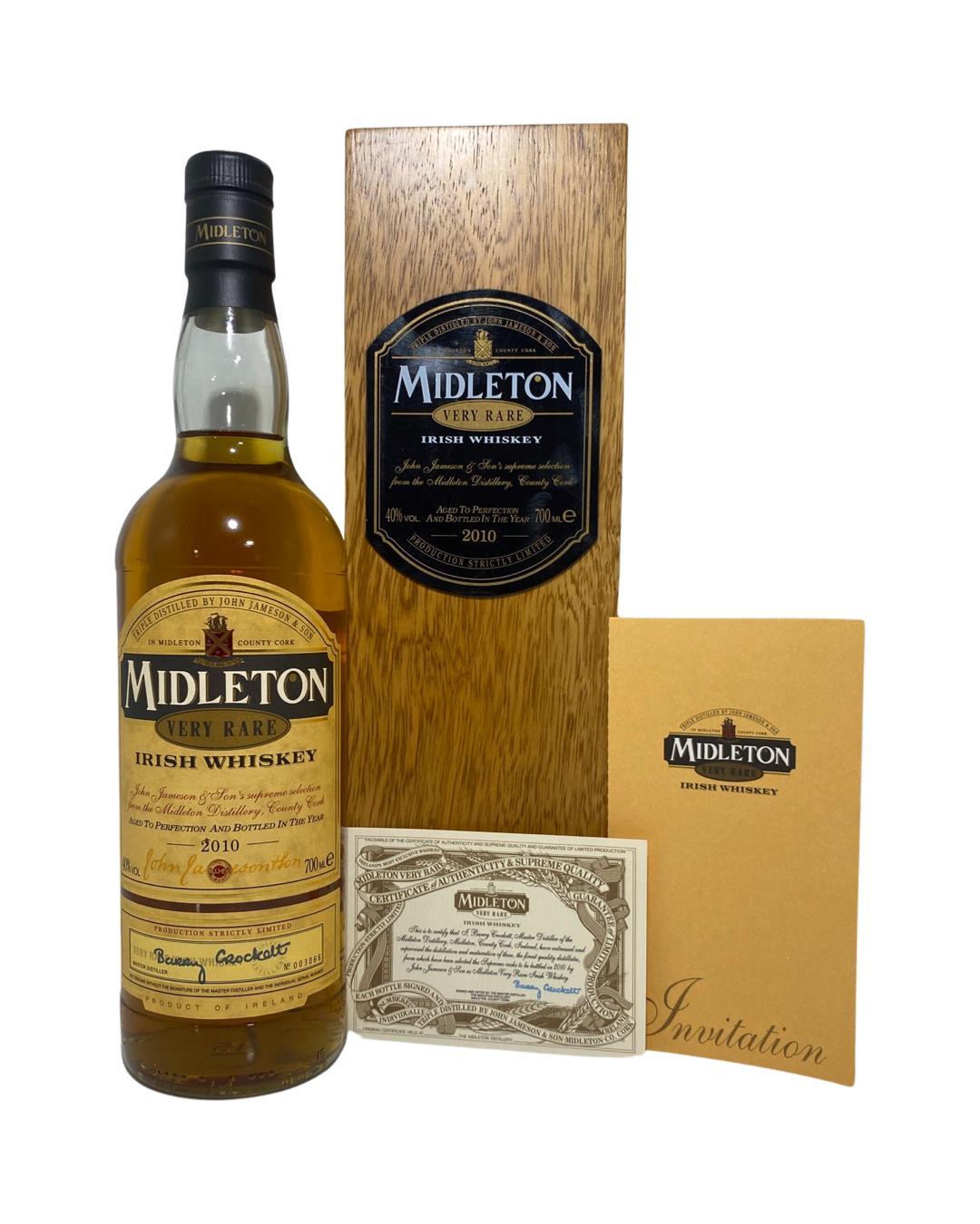 The Midleton Very Rare 2010, is a bottling brought out by the Midleton Distillery in Co. Cork. The ‘Midleton Very Rare’ range was launched in 1984 and a new vintage has been released every year since then. Barry Crockett started off the ‘Midleton Very Rare’ range while he was the Master Distiller of Midleton Distillery, The bottle and box are in excellent condition and include the distillery invite and certificate.
