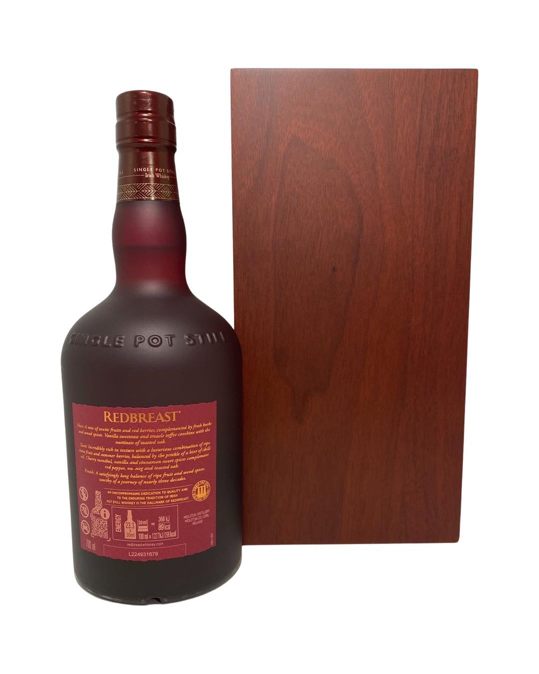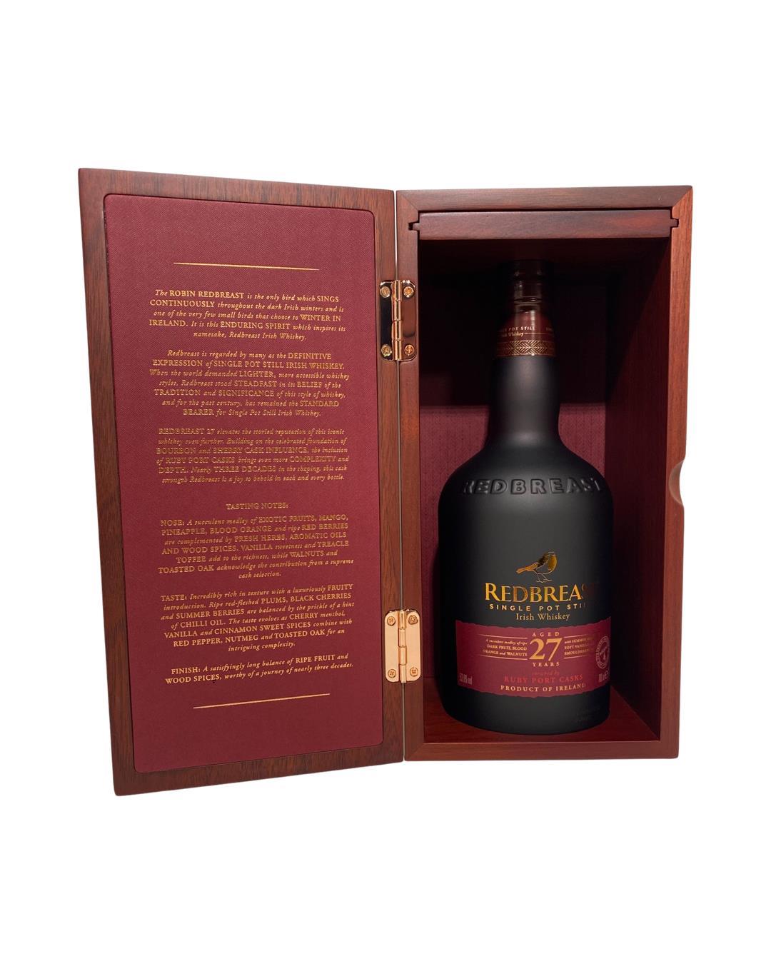 Master winner at the Irish Whiskey Masters in 2021, 2022, and 2023! This release is the oldest permanent member of the Redbreast range and one of their most award-winning. This expression has been matured in both bourbon and sherry casks as well as including ruby port casks for the first time to bring even more complexity and depth. Rich flavours of exotic fruits, wood spices and wonderful sweet treacle notes. This is now the fourth batch of this release.