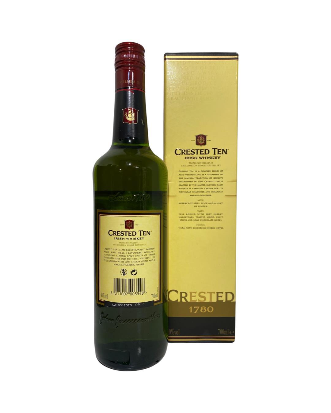 This is the older version of Jameson Crested Ten (now relabelled as simply 'Crested').Its been said amongst the whiskey community that thi is a far better example than the standard Jameson, it has just a bit more flavour and complexity, meaning it is a little easier to drink straight up without a mixer or ice! The blend composition is very similar to the regular Jameson but has a little more ageing. Some extra use of sherry casks also adds some nice weight and spicy fruitiness.
