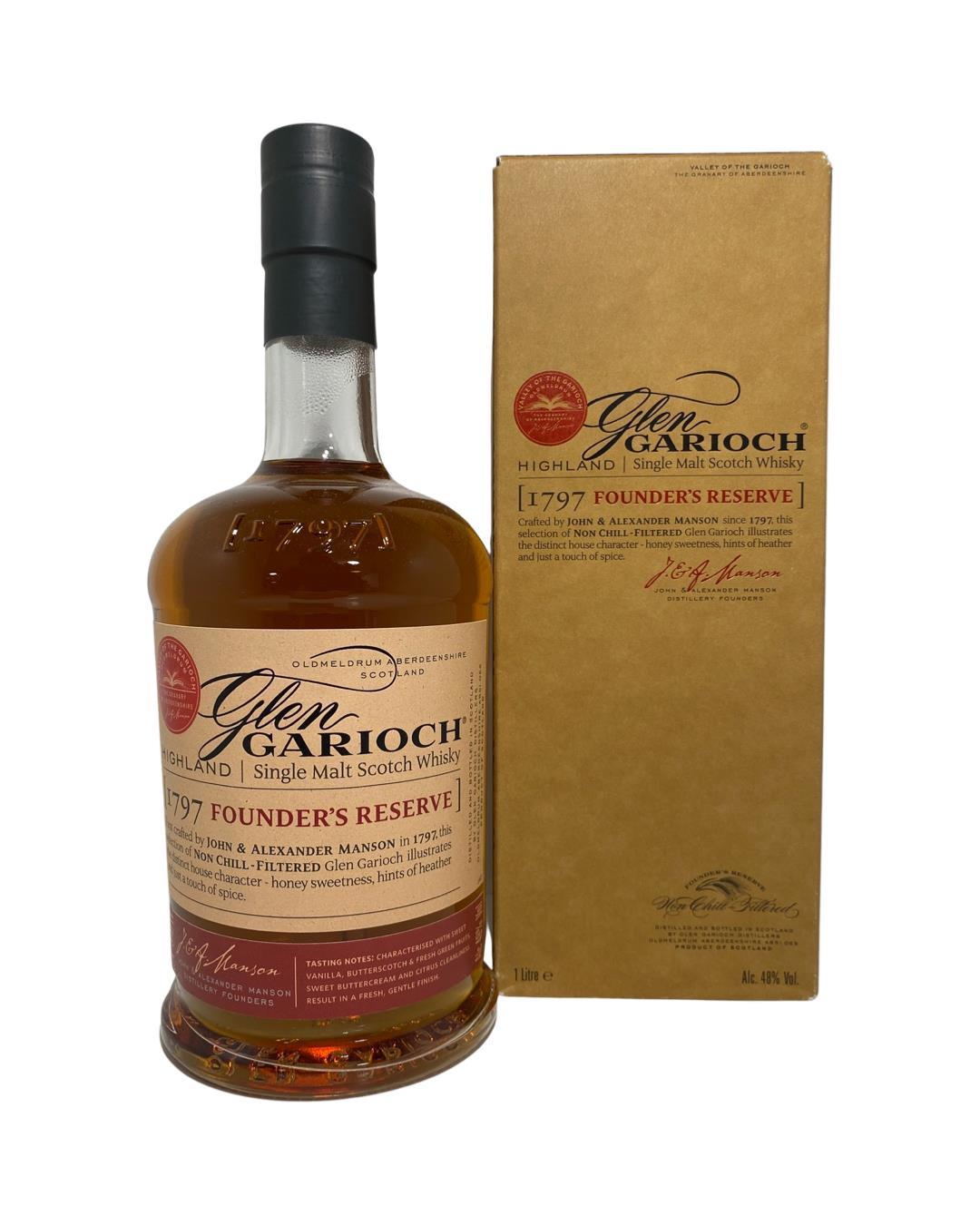 Glen Garioch 1797 Founders Reserve is the introduction malt to the new Glen Garioch single malt range. This combines both ex-Bourbon and Sherry cask matured malts and is non chilfiltered and bottled at 48%.