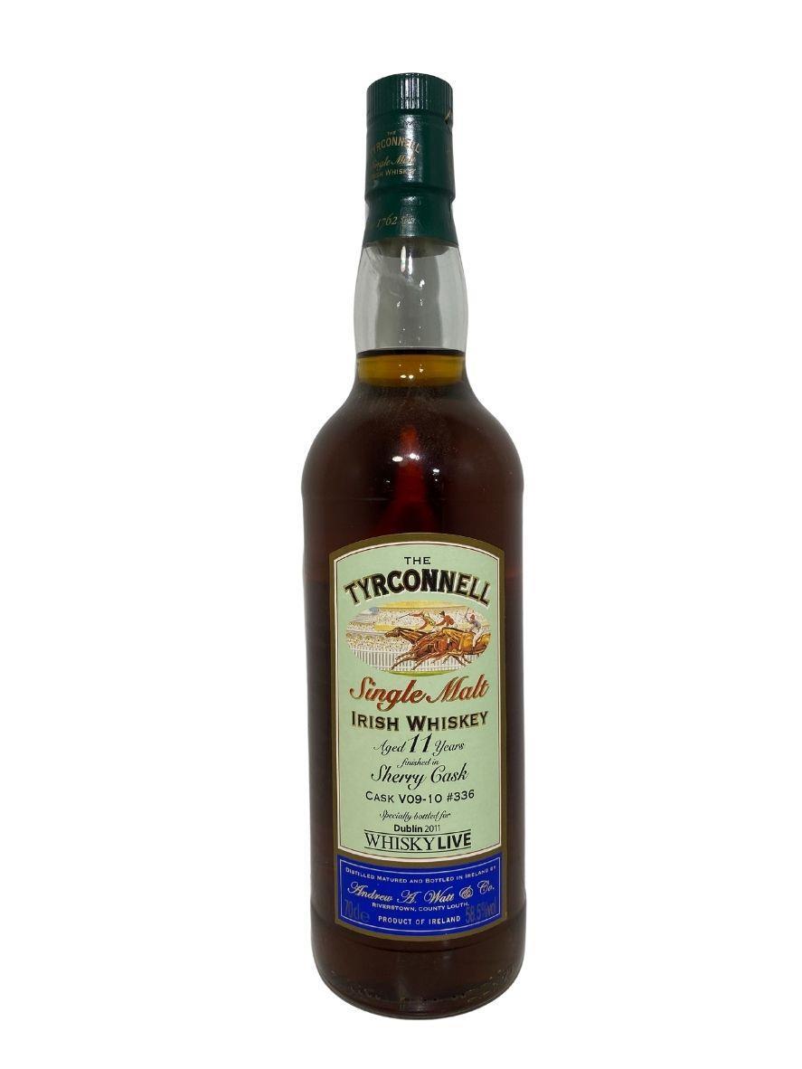 A single cask bottling of Tyrconnell to celebrate the inaugural Whisky Live show in Dublin in 2011. This is an 11 year old and bottle at 58.5% abv and finished in a sherry cask. Cask V09-10 Number 336