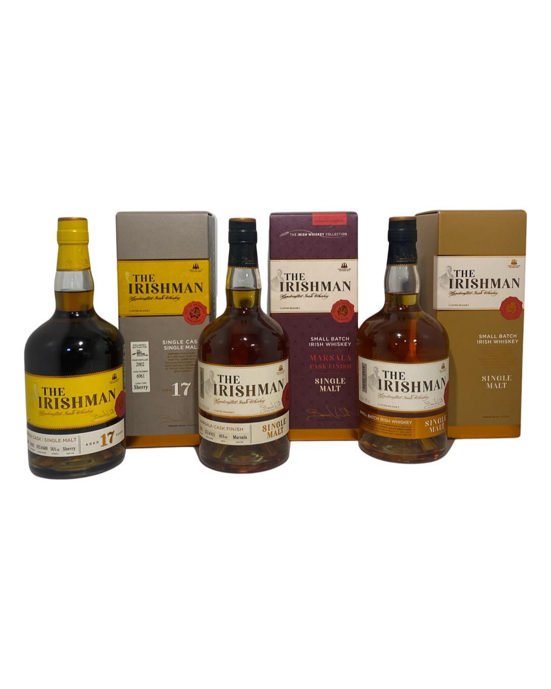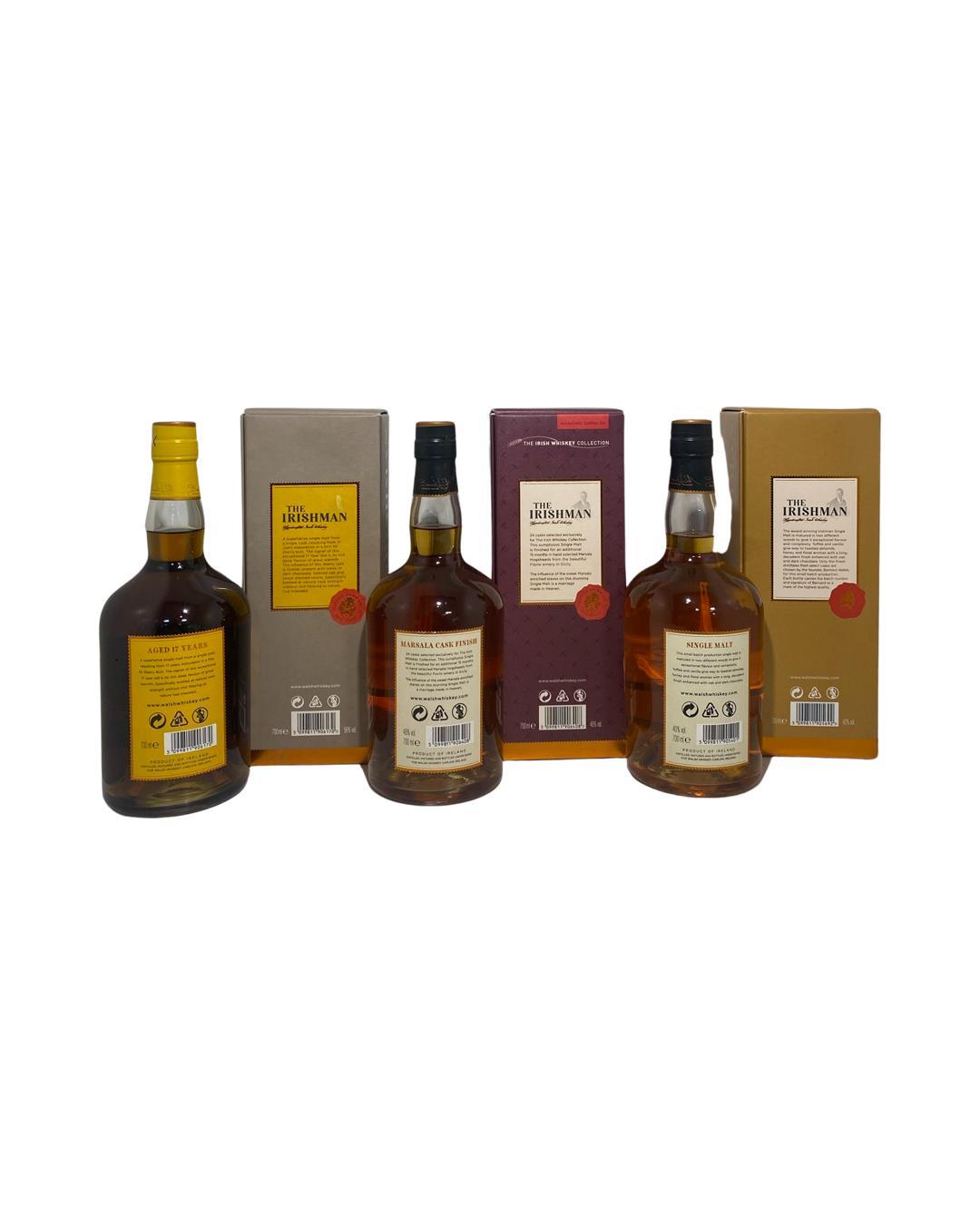 A lovely selection of some of the finest Irishman whiskeys from past and present. This lot includes the 17 Year Old Single Malt, the Marsala Irish Whiskey Collection exclusive, Single Malt ( old version), Dick Macks Brown Berry Ale cask, the 12yr Single Malt (old version), and the brand new Legacy edition.