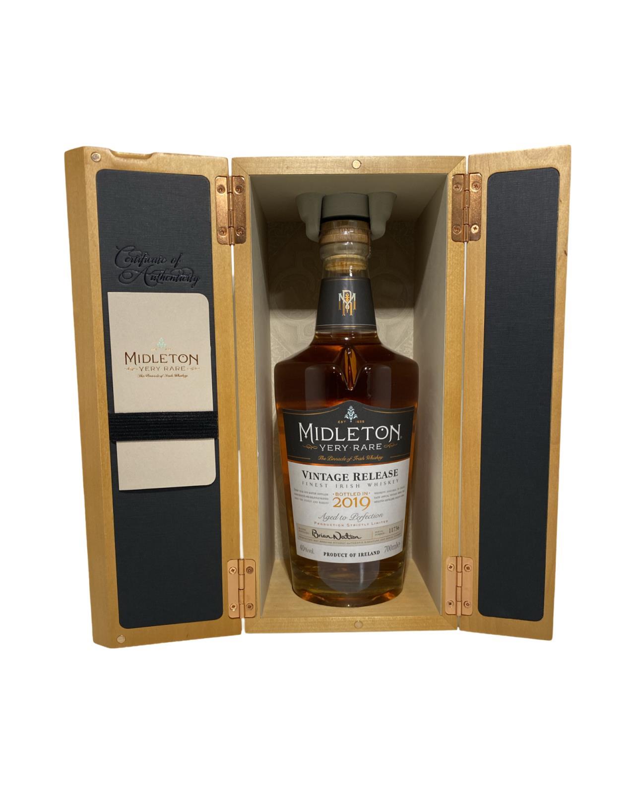 The Midleton Very Rare 2019, is a bottling brought out by the Midleton Distillery in Co. Cork. The ‘Midleton Very Rare’ range was launched in 1984 and a new vintage has been released every year since then. Barry Crockett started off the ‘Midleton Very Rare’ range while he was the Master Distiller of Midleton Distillery, in 2013 Barry Crockett retired from his role of Master Distiller. From 2014 onwards Brian Nation has been creating the ‘Midleton Very Rare’ range, maintaining its role as standard-bearer and pinnacle of Irish Whiskey. The bottle and gift box in great condition also include the cert and distillery invite.