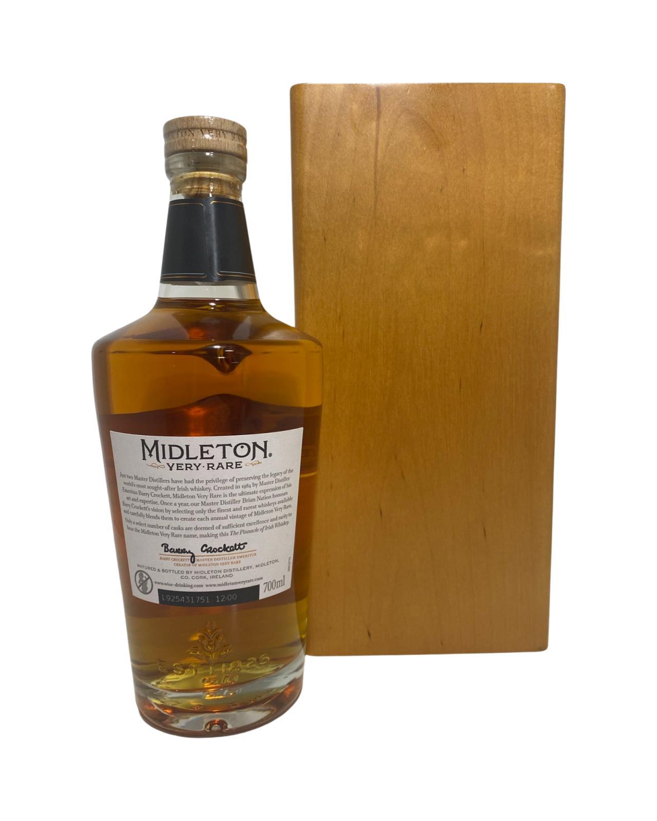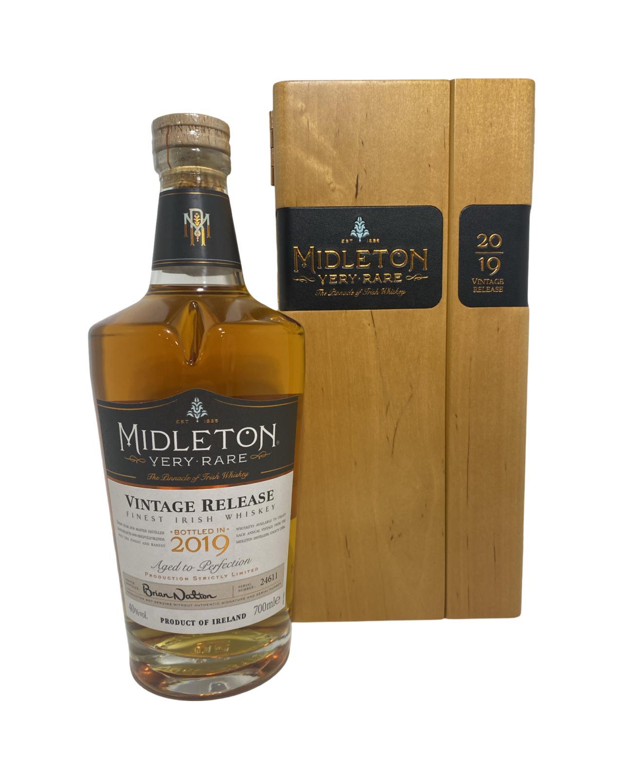 The Midleton Very Rare 2019, is a bottling brought out by the Midleton Distillery in Co. Cork. The ‘Midleton Very Rare’ range was launched in 1984 and a new vintage has been released every year since then. Barry Crockett started off the ‘Midleton Very Rare’ range while he was the Master Distiller of Midleton Distillery, in 2013 Barry Crockett retired from his role of Master Distiller. From 2014 onwards Brian Nation has been creating the ‘Midleton Very Rare’ range, maintaining its role as standard-bearer and pinnacle of Irish Whiskey. The bottle and gift box in great condition also include the cert and distillery invite.