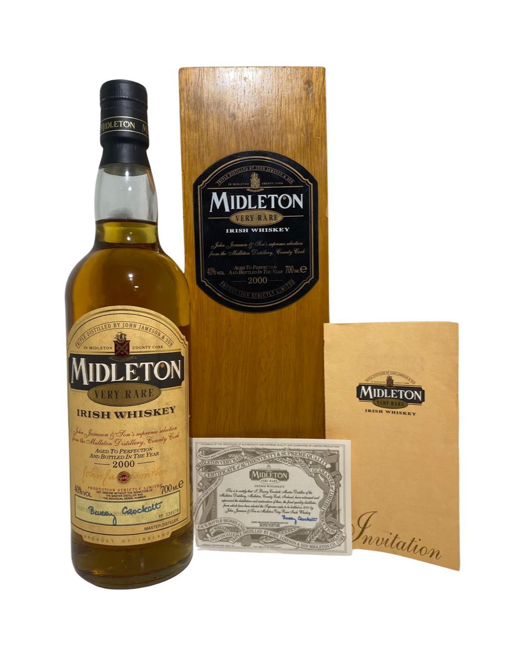 The Midleton Very Rare 2000, is a bottling brought out by the Midleton Distillery in Co. Cork. The ‘Midleton Very Rare’ range was launched in 1984 and a new vintage has been released every year since then. Barry Crockett started off the ‘Midleton Very Rare’ range while he was the Master Distiller of Midleton Distillery.The Bottle and Box are in perfect condition. The Midleton Very Rare range of whiskeys is a collection of highly regarded Irish whiskeys crafted at the Midleton Distillery in County Cork, Ireland. With a reputation for excellence, these whiskeys are known for their exceptional quality, craftsmanship, and limited availability. Characterized by smoothness, complexity, and depth of flavour, Midleton Very Rare often exhibits notes of ripe fruits, honey, vanilla, spices, and oak. The component casks are typically aged for around 12-27 years but each yearly batch is unique and for this reason the whiskeys are highly collectible. To this day the Midleton Very Rare series is still regarded as the pinnacle and benchmark for ultra-premium blended Irish whiskeys.