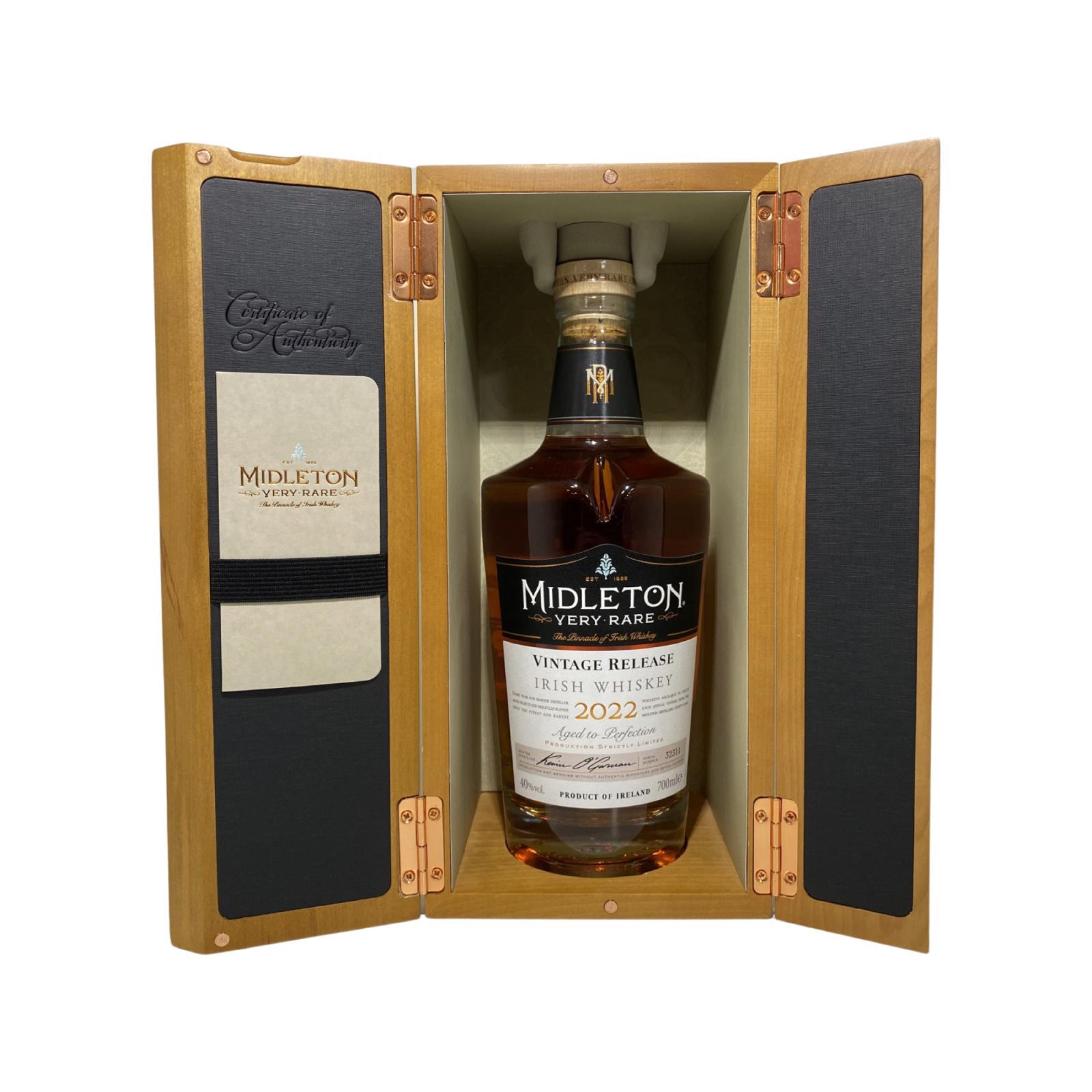 The 2022 edition to Ireland's most premium and beloved whiskey series; Midleton Very Rare. This is the 39th installment and the first release under Kevin O' Gorman appointed Master Distiller of the Midleton Distillery in 2020. Both the bottle and gift box are in very good condition, certificate and distillery invite are also included. Bottle number 32311