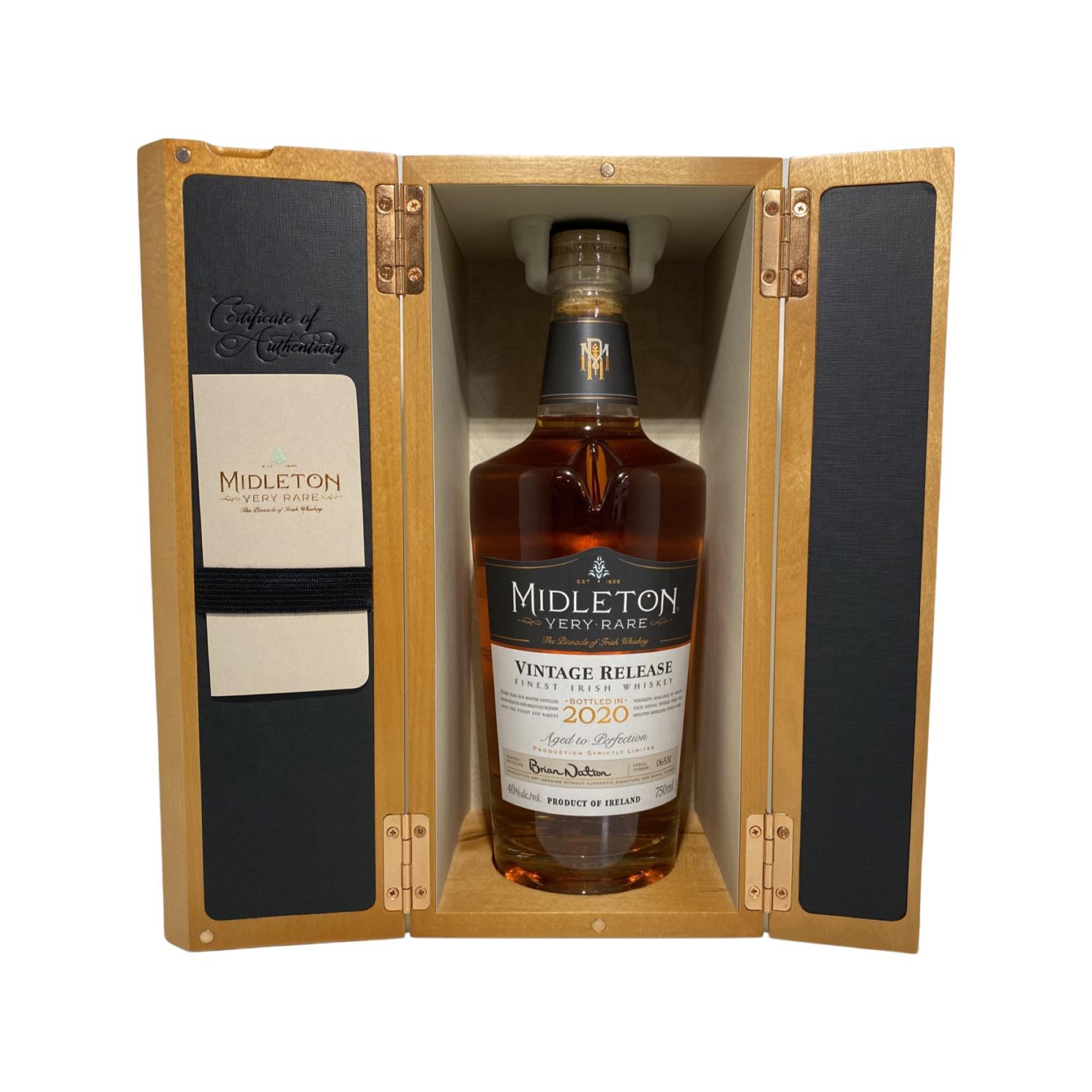 The 2020 edition to Ireland's most premium and beloved whiskey series; Midleton Very Rare. This is the 38th installment and the last release under Brian Nation appointed Master Distiller of the Midleton Distillery in 2014. Both the bottle and gift box are in very good condition, certificate and distillery invite are also included.Bottle number6531