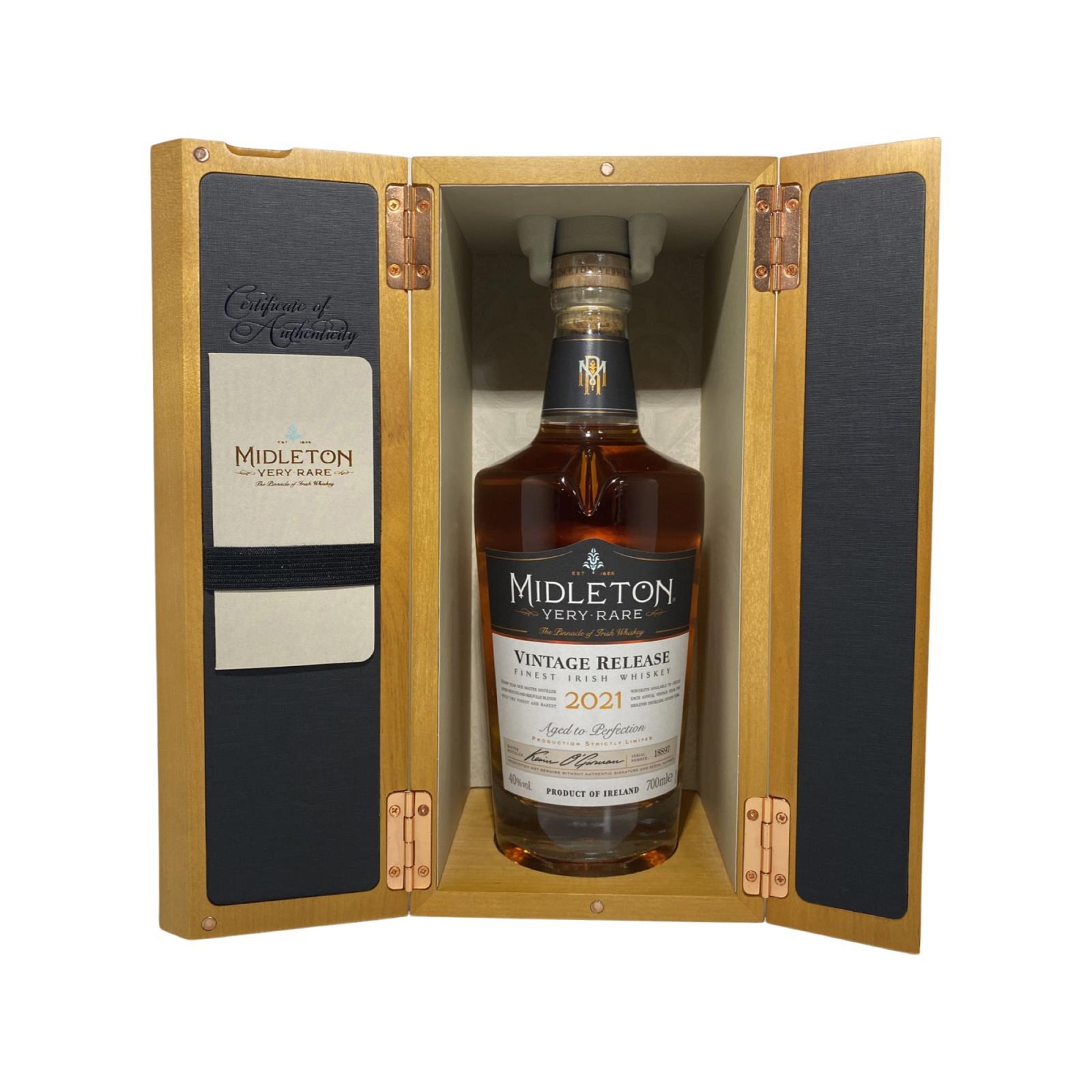The 2021 edition to Ireland's most premium and beloved whiskey series; Midleton Very Rare. This is the 38th installment and the first release under Kevin O' Gorman appointed Master Distiller of the Midleton Distillery in 2020. Both the bottle and gift box are in very good condition, certificate and distillery invite are also included. Bottle number 18897