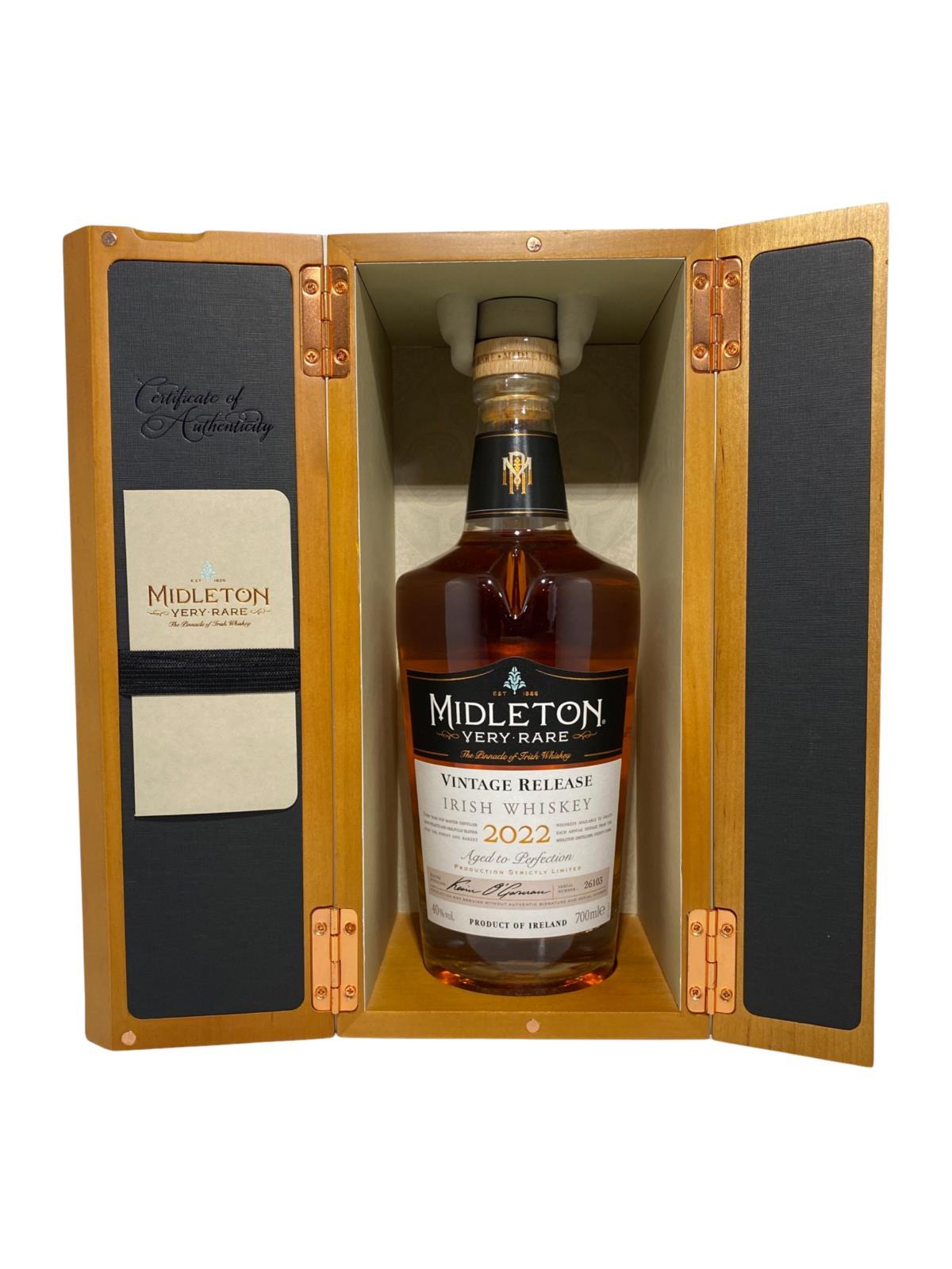 The 2022 edition to Ireland's most premium and beloved whiskey series; Midleton Very Rare. This is the 39th installment and the first release under Kevin O' Gorman appointed Master Distiller of the Midleton Distillery in 2020. Both the bottle and gift box are in very good condition, certificate and distillery invite are also included.